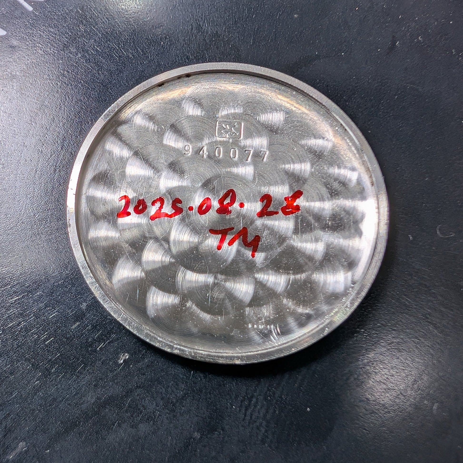 Untouched, sharp stainless steel case with only minor, fine scratches.