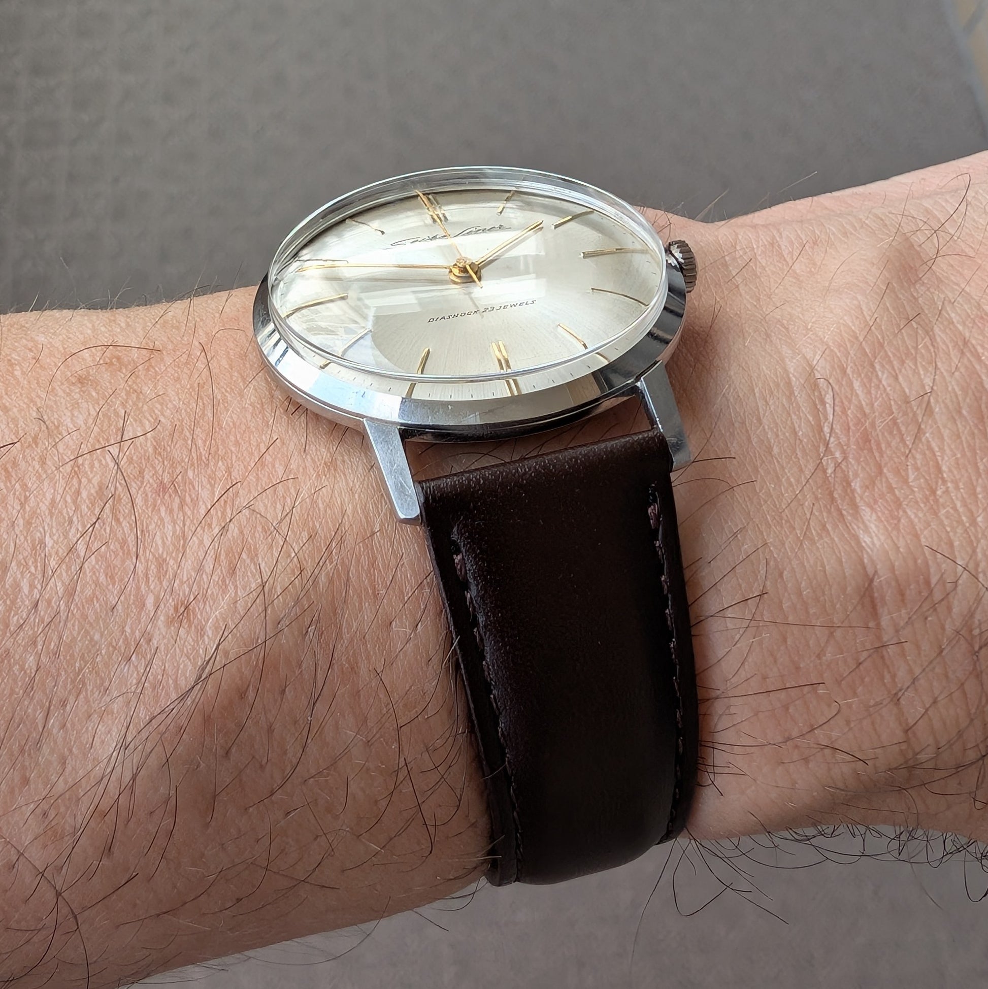 Caliber 54 is very well built movement. It has balance bridge, rather than cock, for more stability. It runs strong with good accuracy for 61 year old watch.