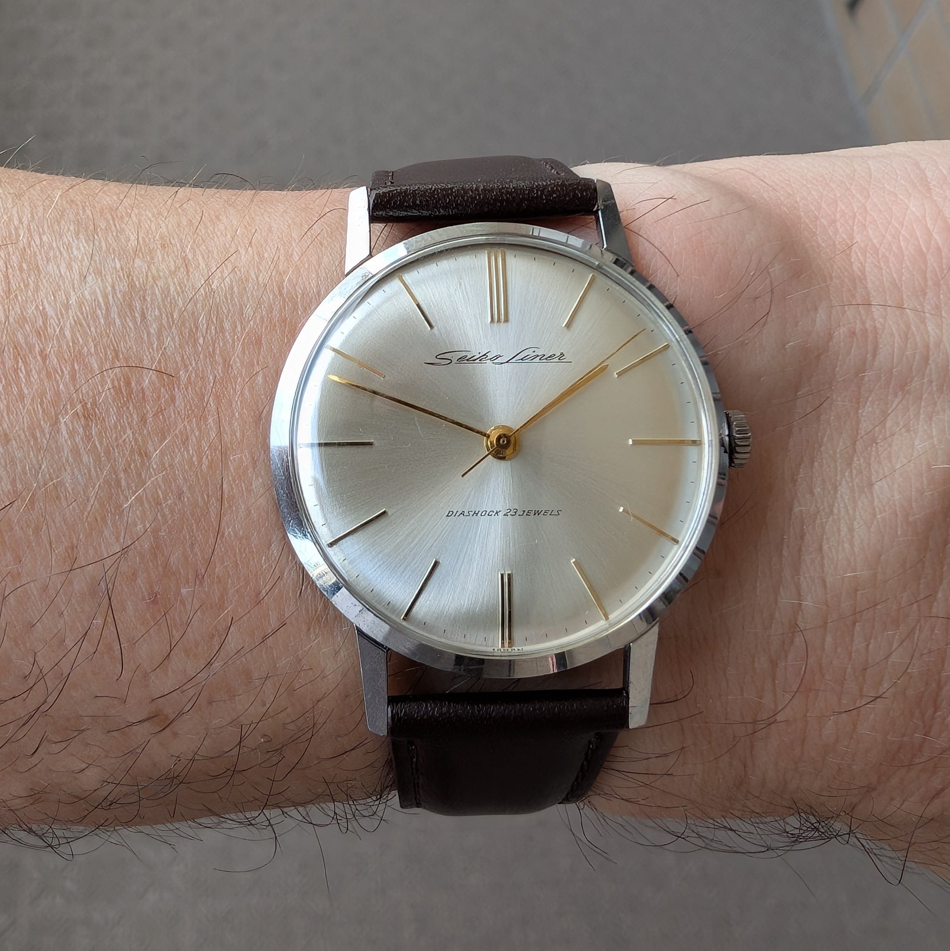 Serviced, beautiful 1959 Seiko Cronos with Liner dial, 21 jewels manual winding watch in very good condition.