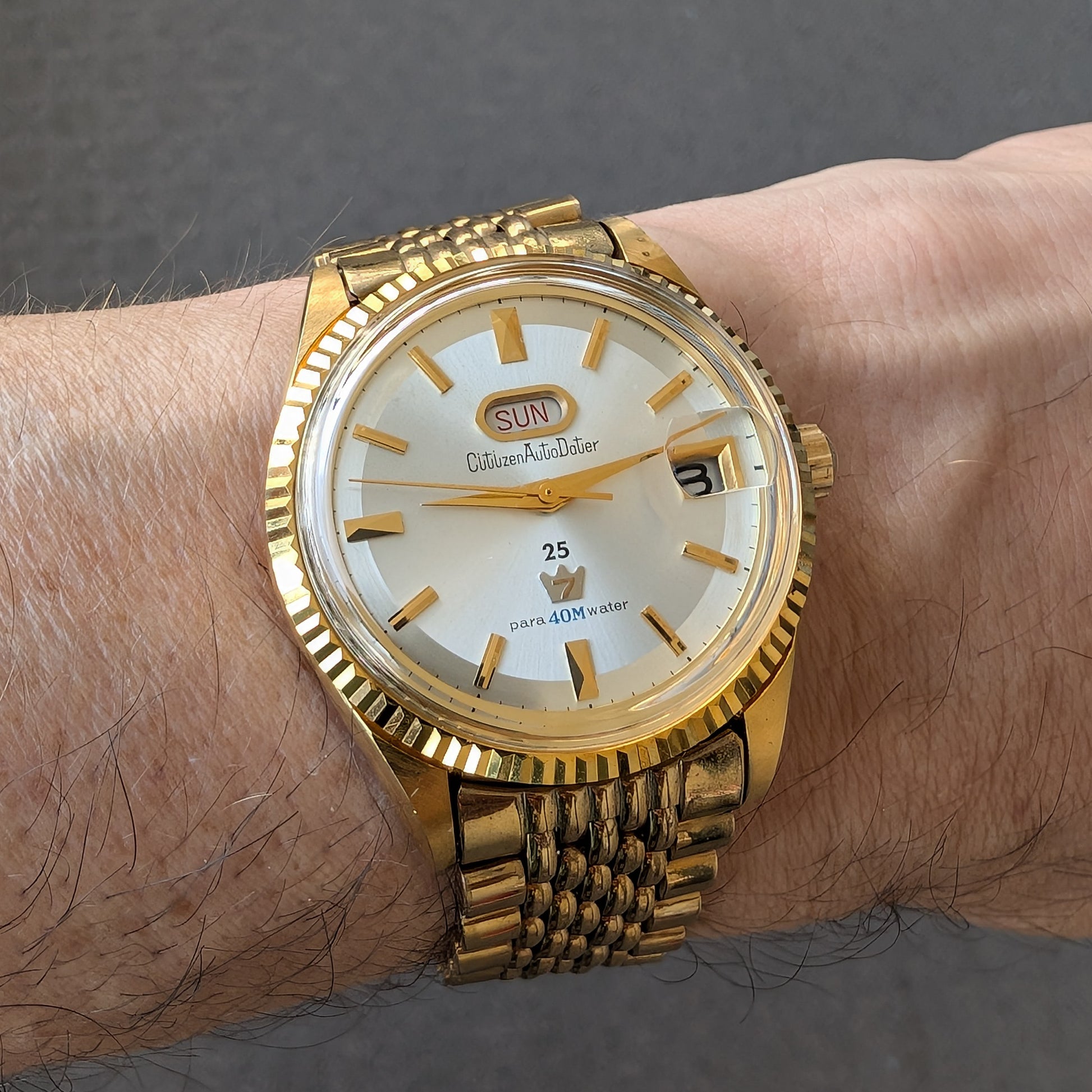 Strikingly beautiful, UNWORN , just serviced, 1965 Citizen Auto Dater with 25 jewels Jet automatic movement in amazing condition.