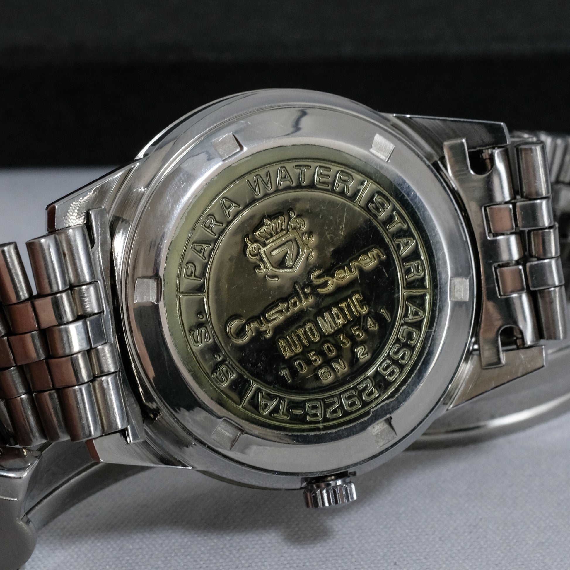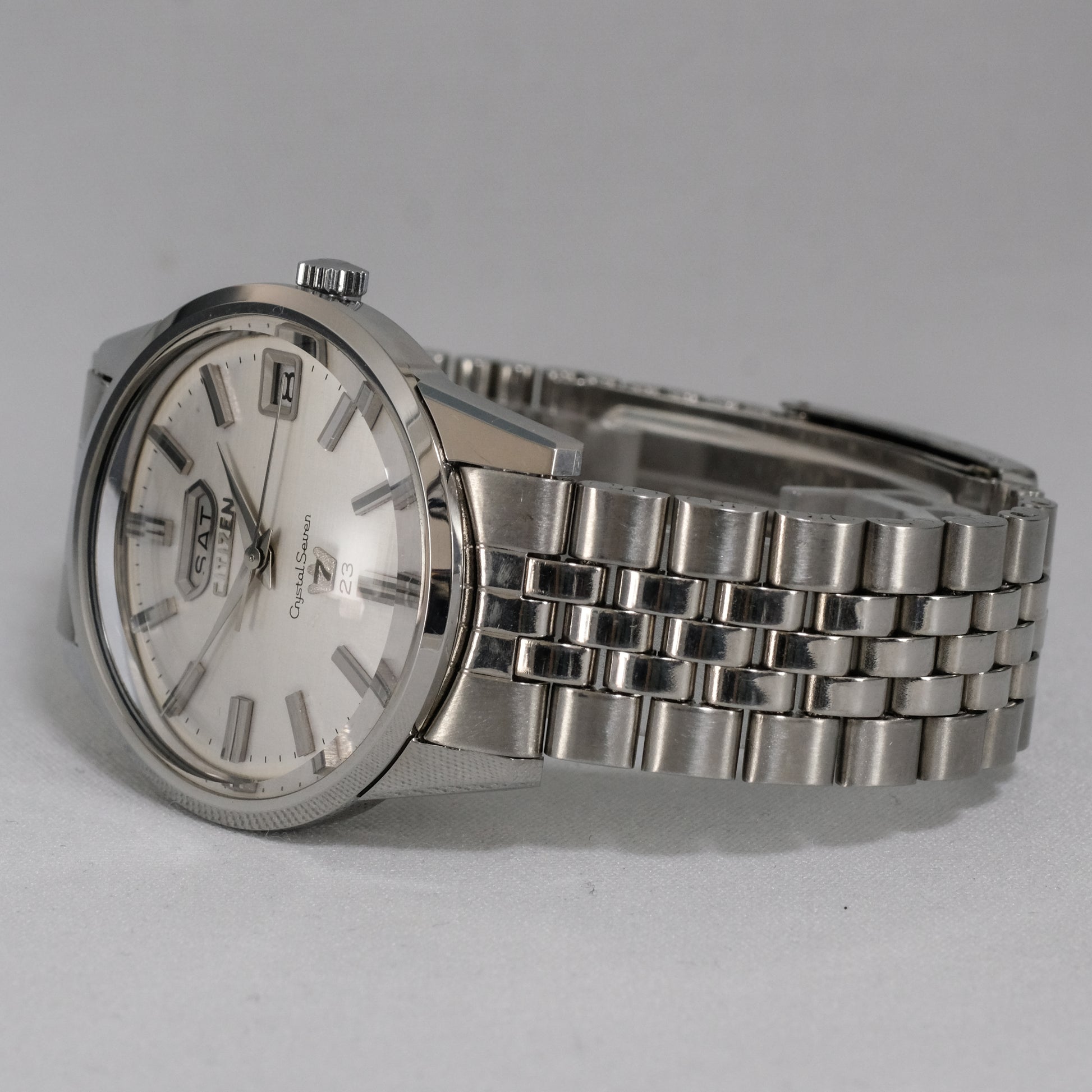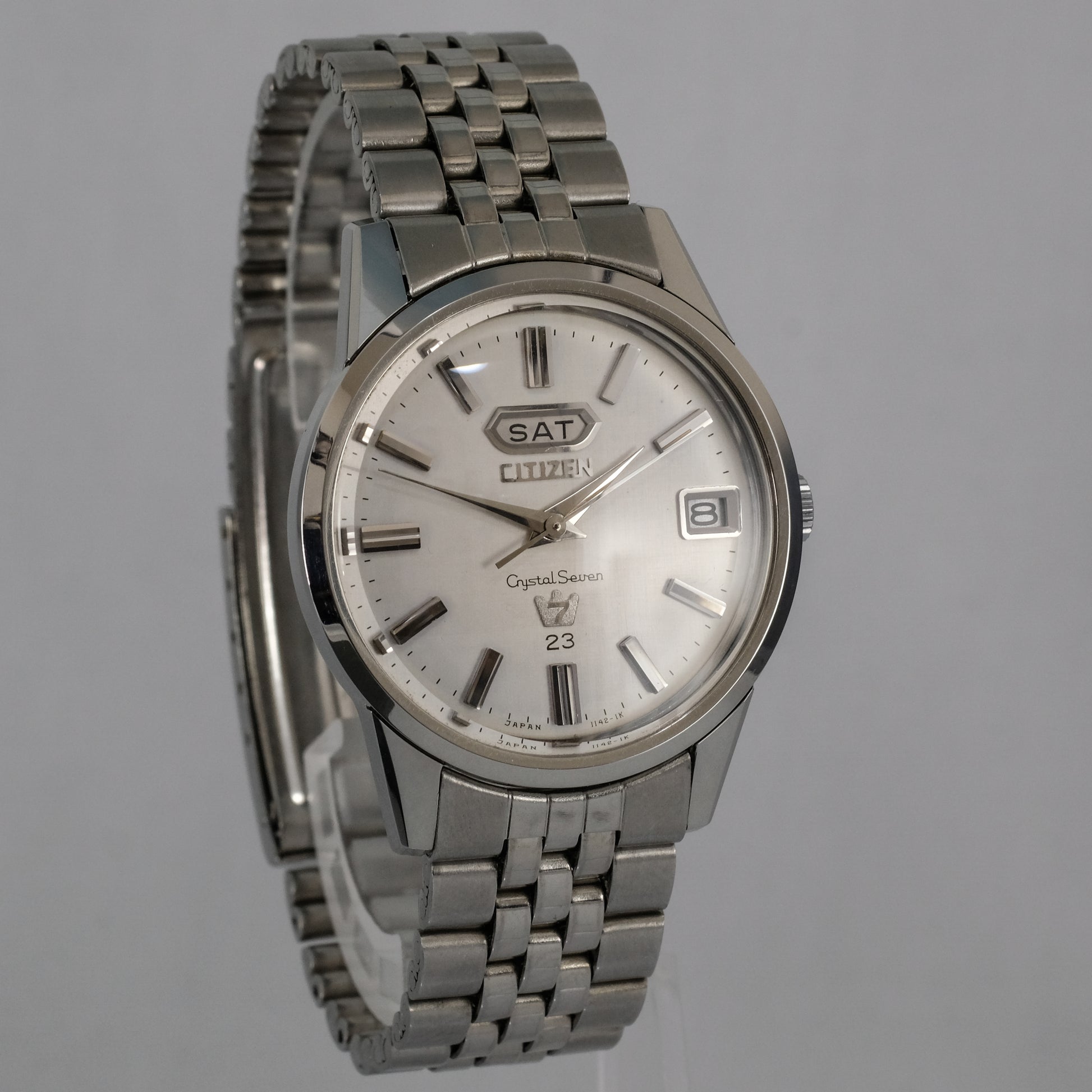 Striking, just serviced, 1967 Citizen Crystal Seven, 23 jewels automatic watch in all original, mint condition.