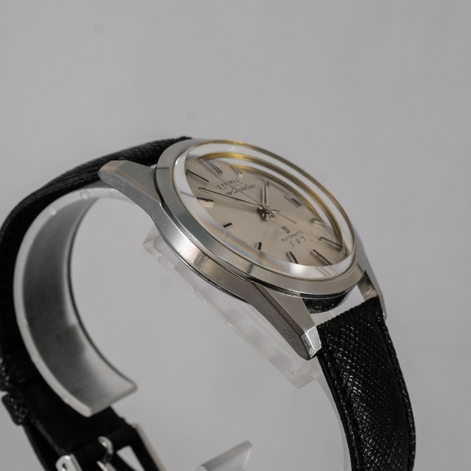 Very unique in design, a real stand out among other Japanese watches at the time. Case is slim and relatively long with beautiful angles and sharp lines.