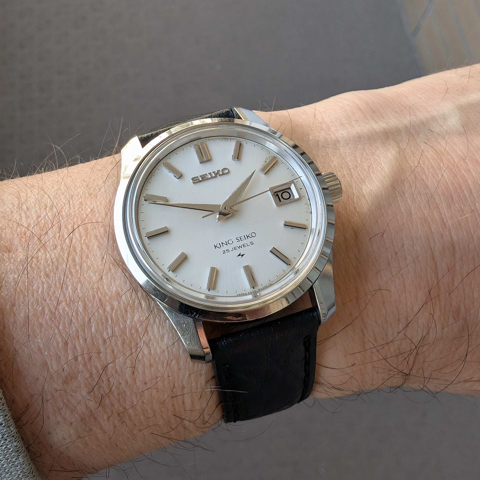 Serviced, 1967 King Seiko 25 jewels manual winding watch with hacking in good condition.