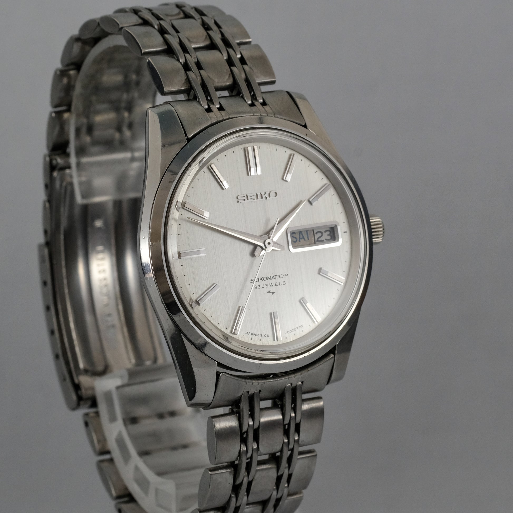 The Seikomatic-P series features the 33 jewel day-date 5106A caliber with every jewel being functional.