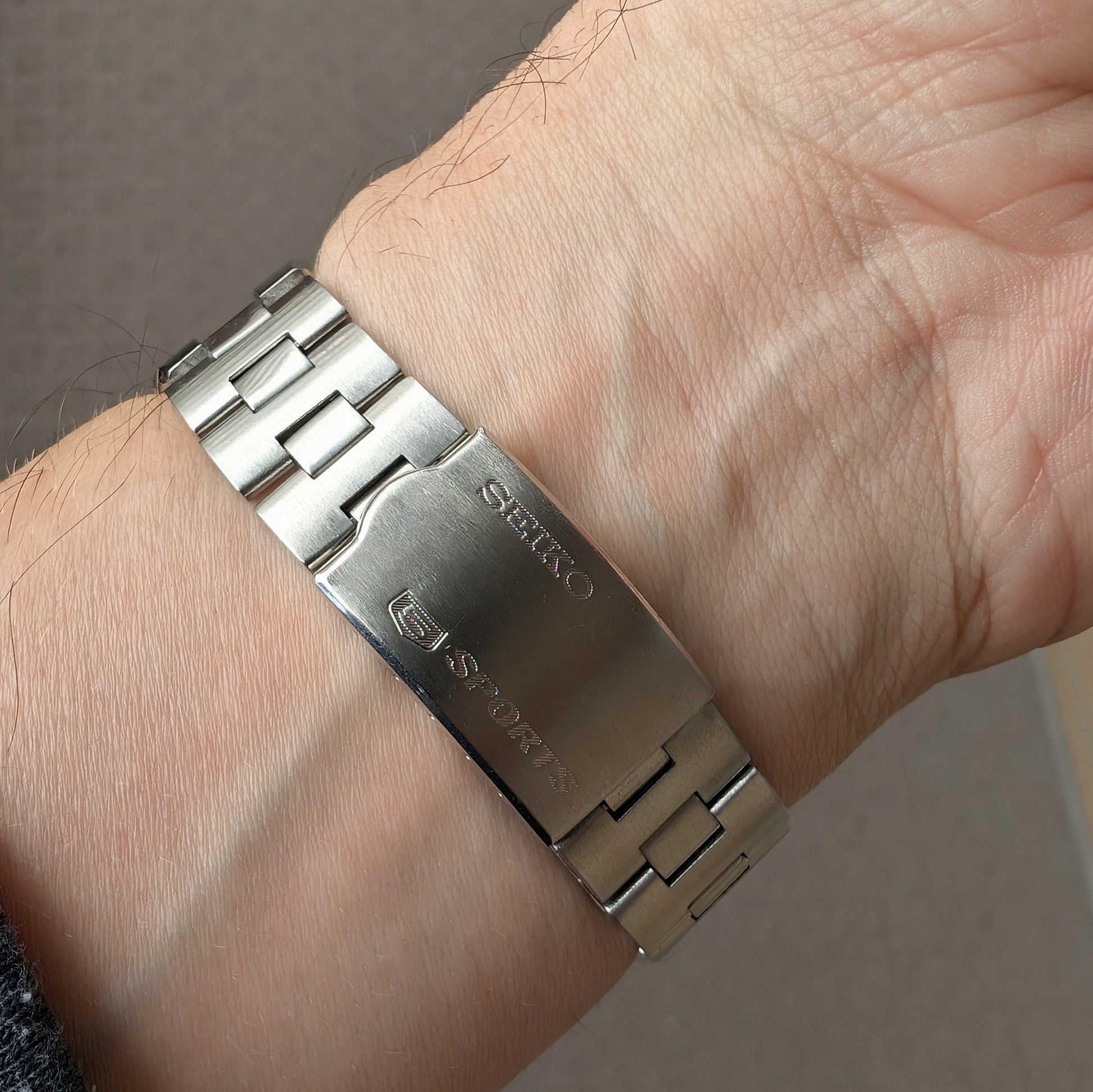 At its heart lies the Seiko 5126A automatic movement, operating at 19,800 beats per hour. This 23-jewel movement includes a day-date complication, with the date quickset function activated by pressing the crown. Notably, it lacks hand-winding and hacking features, which were more common in higher-end models of the time. The movement's architecture is distinctive, utilizing reverser wheels for the automatic winding mechanism, differing from Seiko's typical pawl and transmission wheel system.