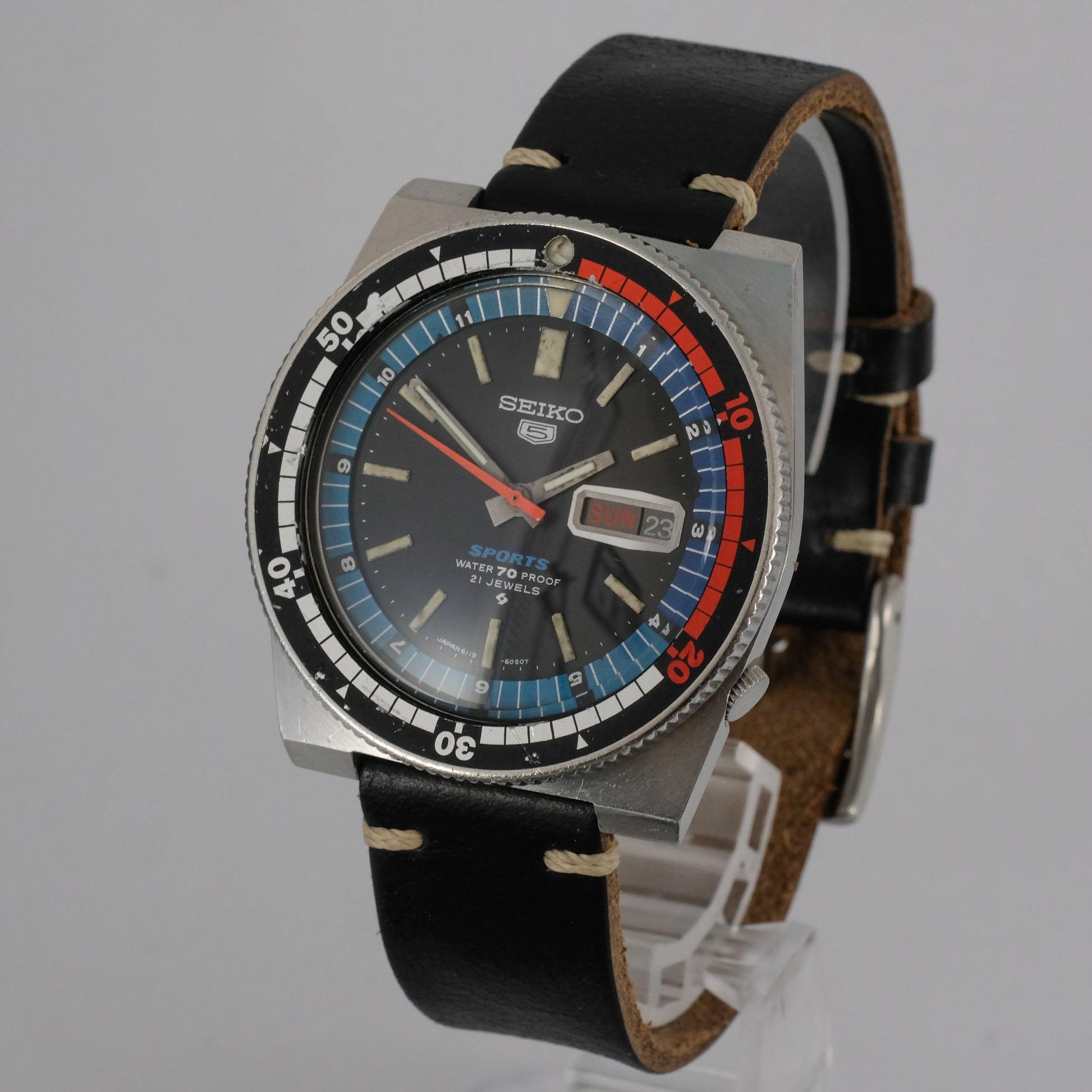 Serviced, iconic, ultra cool 1969 Seiko 5 Sports "Regatta Timer" 21 jewels automatic watch in good condition.