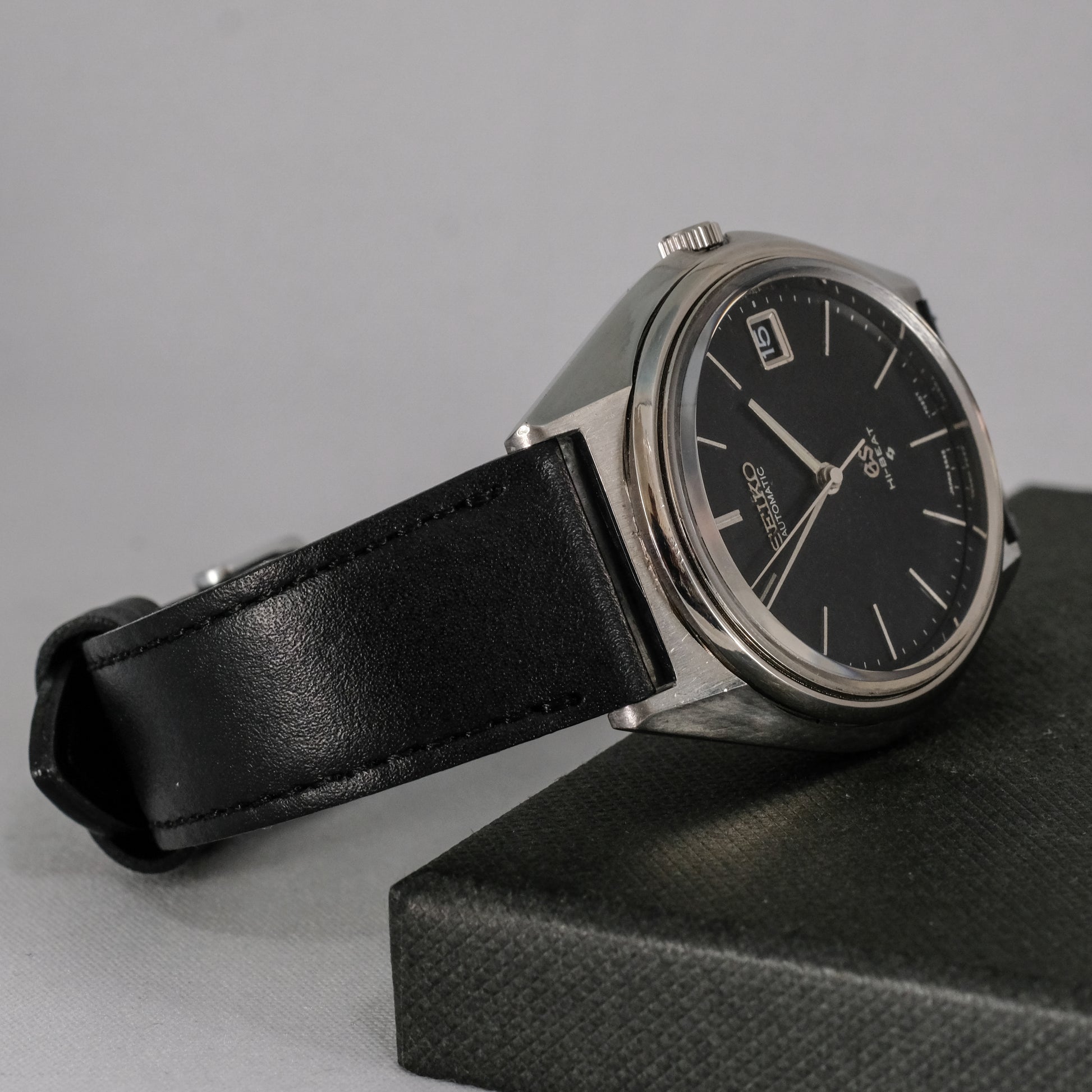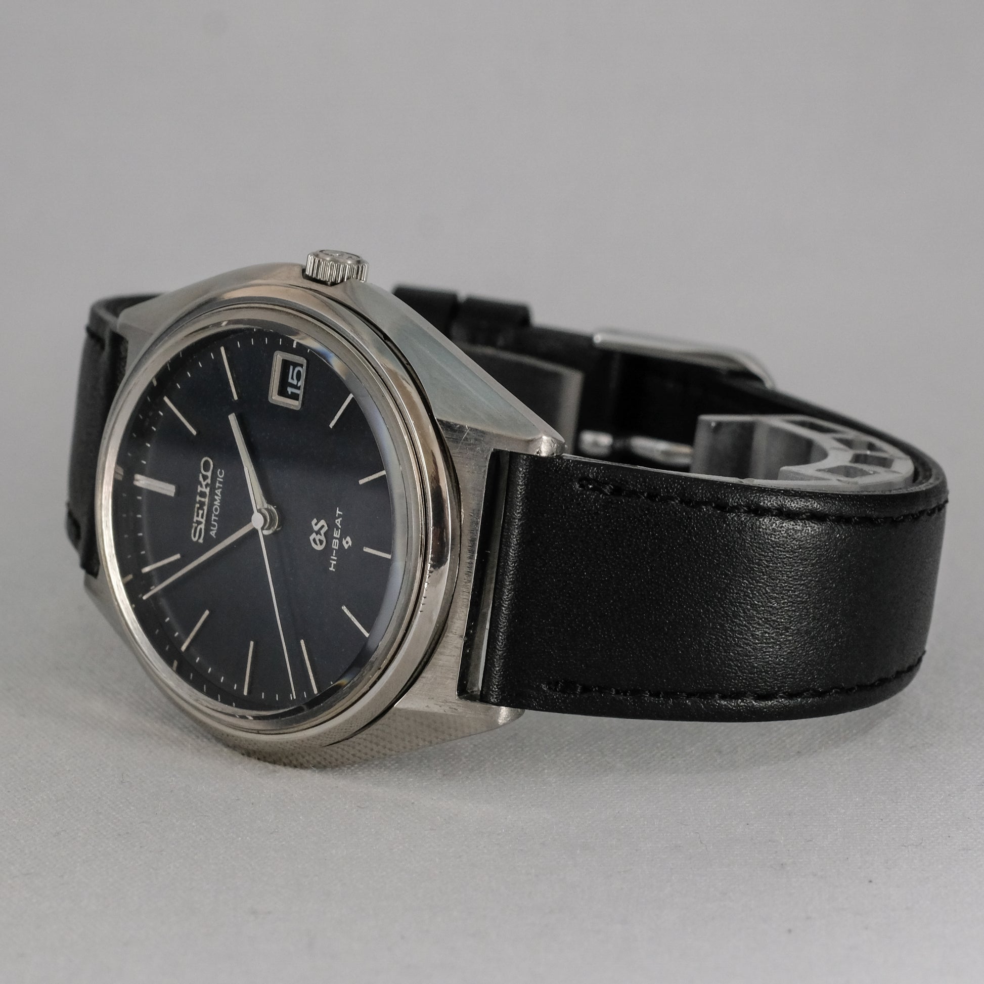 Serviced, 1971 Seiko GS, 25 jewels hi beat automatic watch with not often seen navy dial, in good condition.