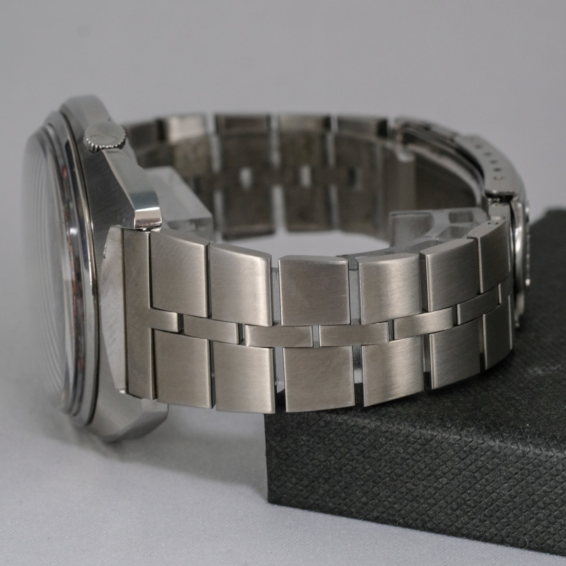 New, aftermarket, solid link stainless steel bracelet good for up 20cm wrist or new Seiko, black, cowhide leather strap. Your choice.