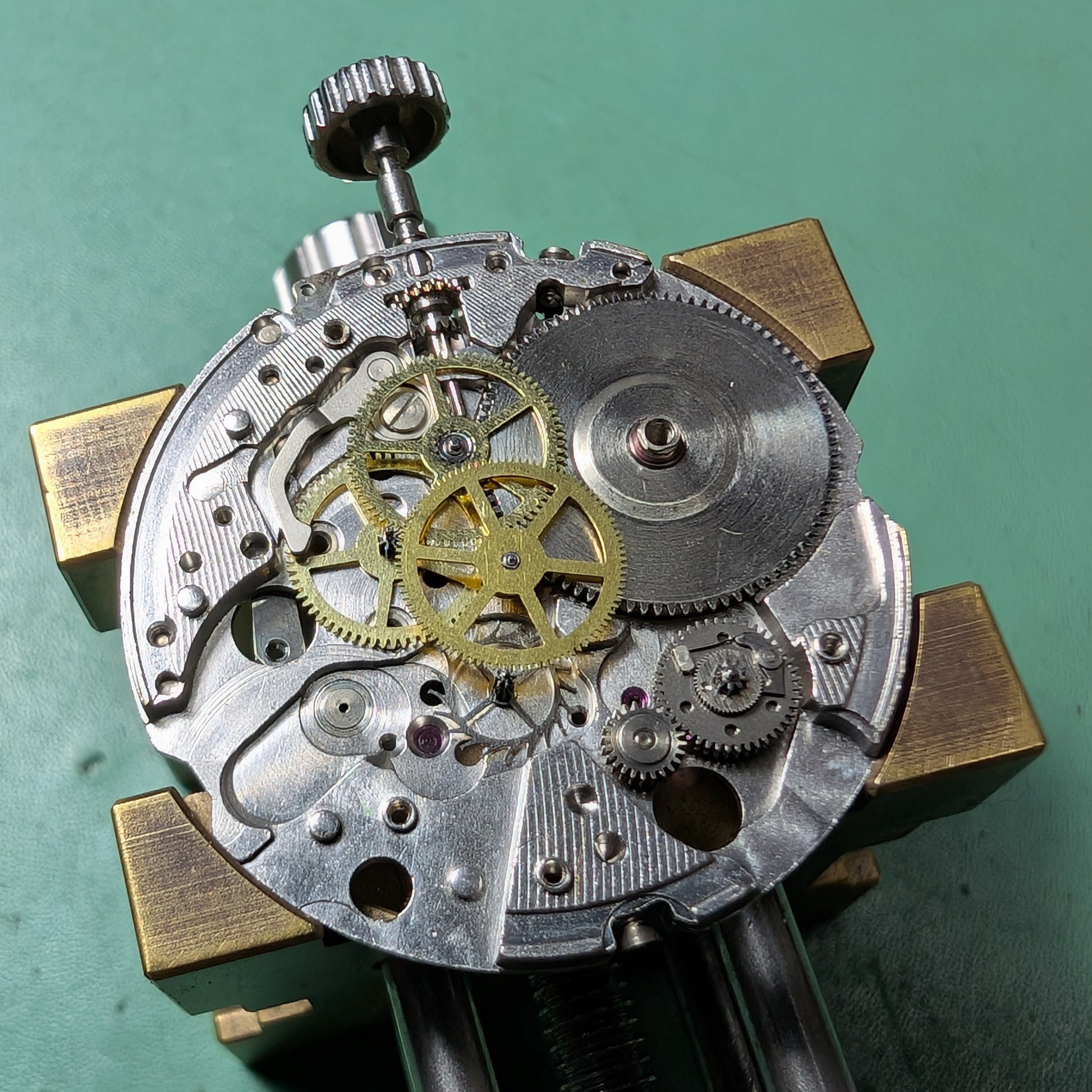 Movement has been serviced and it runs well with excellent accuracy. Plastic star in calendar quick set mechanism was replaced with metal one.
