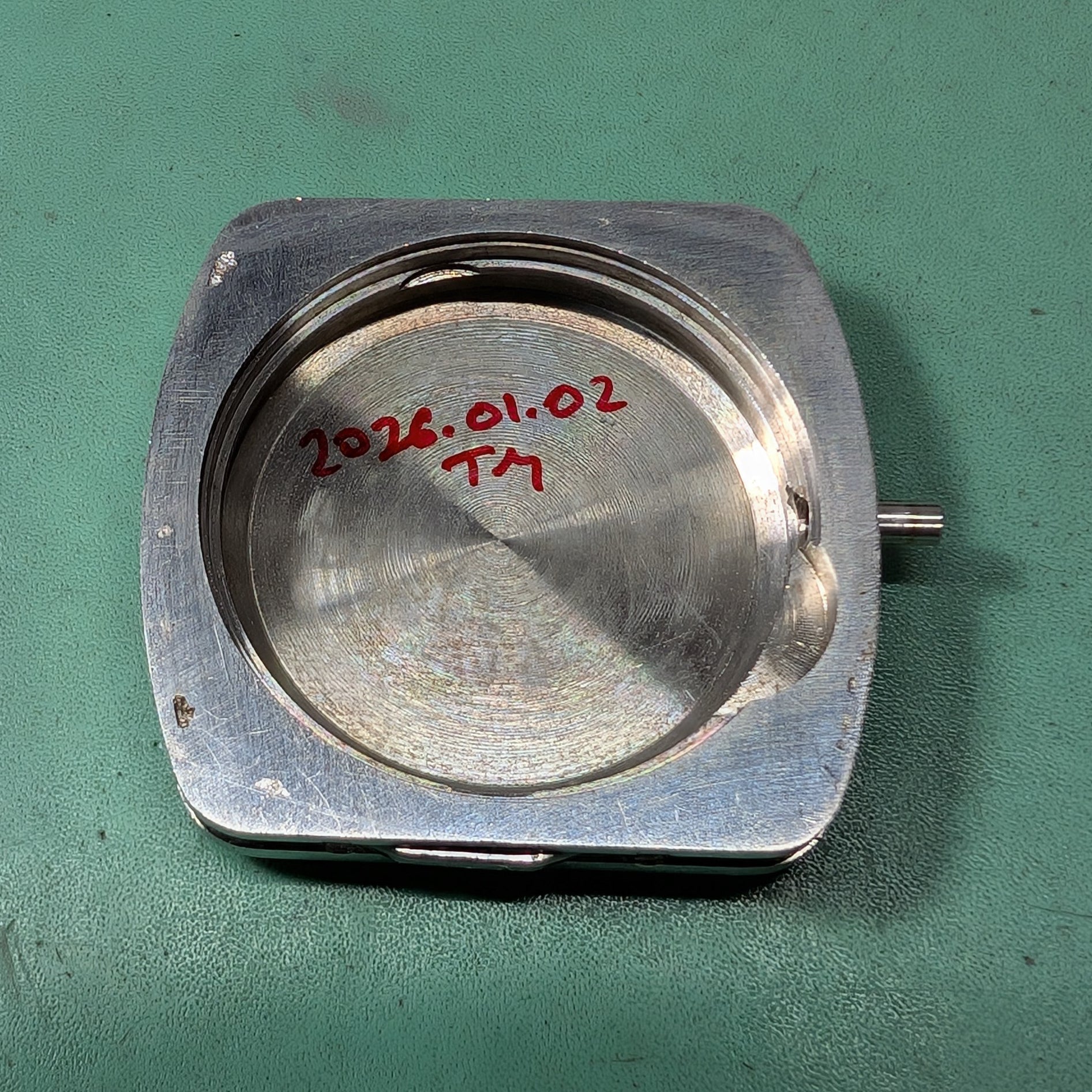 It features a flashy, very beautiful, three-dimensional dial and multi-faceted cut glass inside an angular steel case. There are some small blemishes, that are very noticeable under the crystal.
