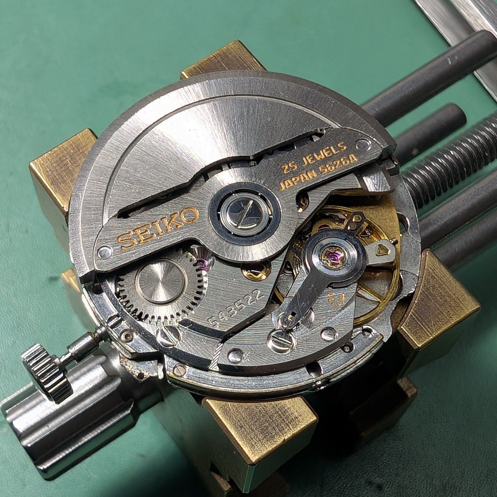 Movement is in excellent condition. Winding is easy, hacking and quick set calendar work well. Dual weekdays, English and Kanji.