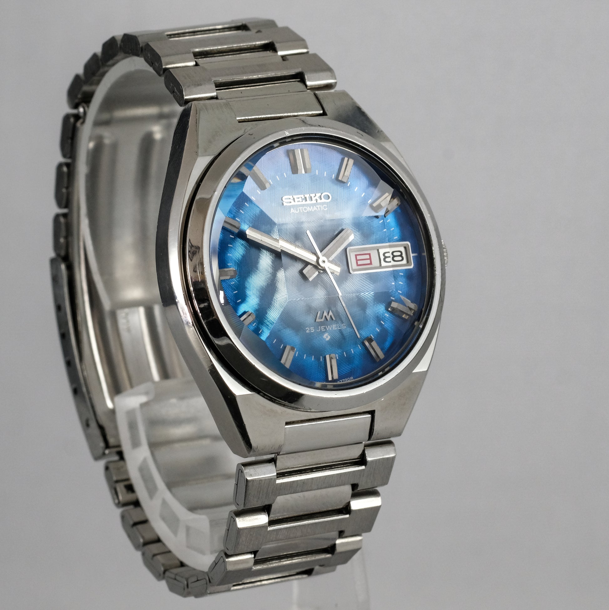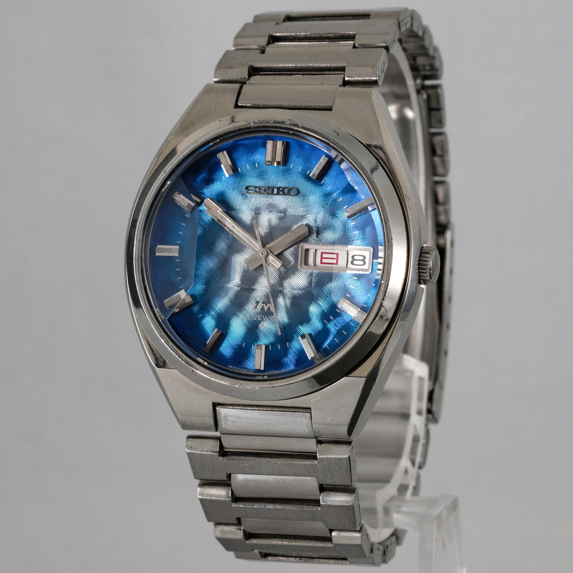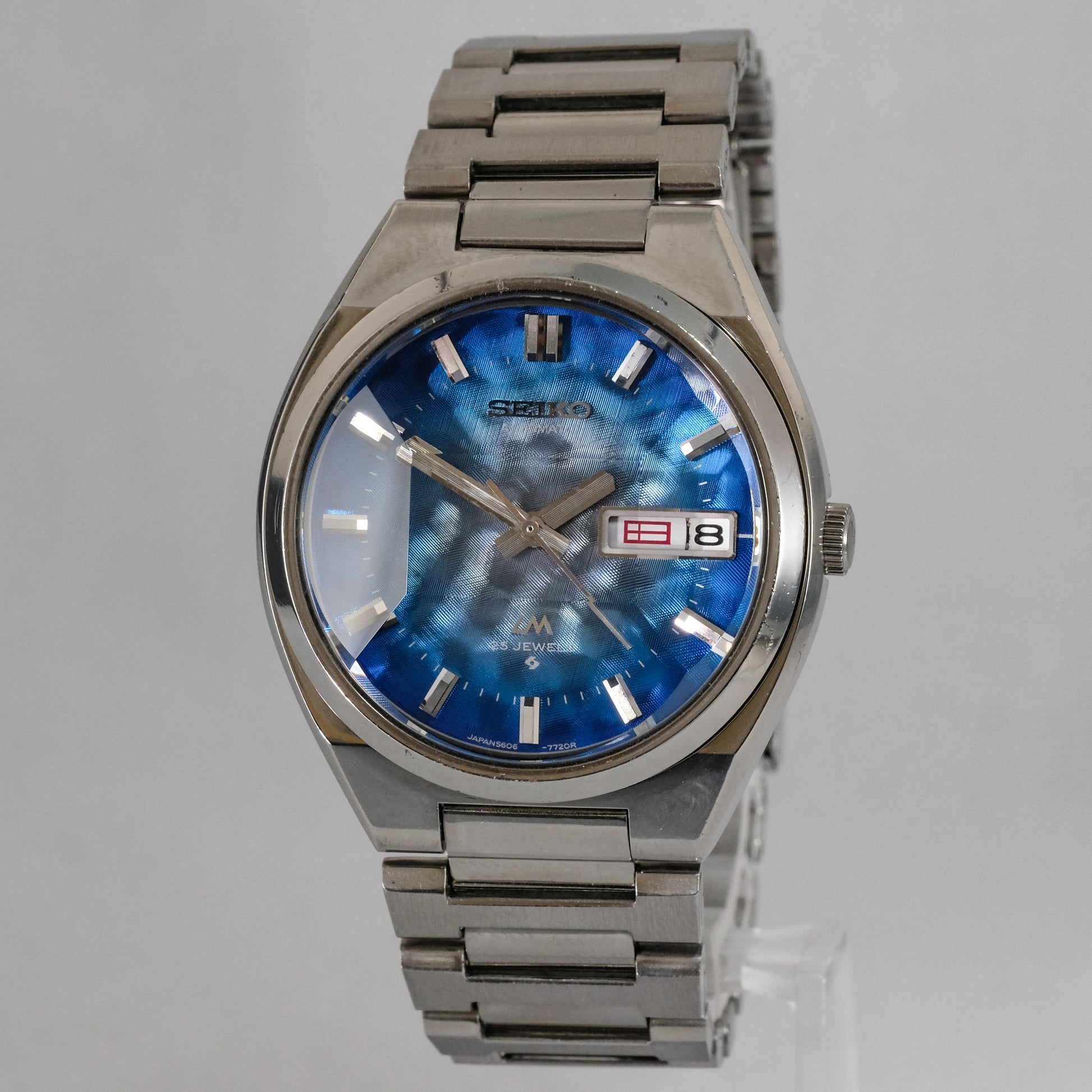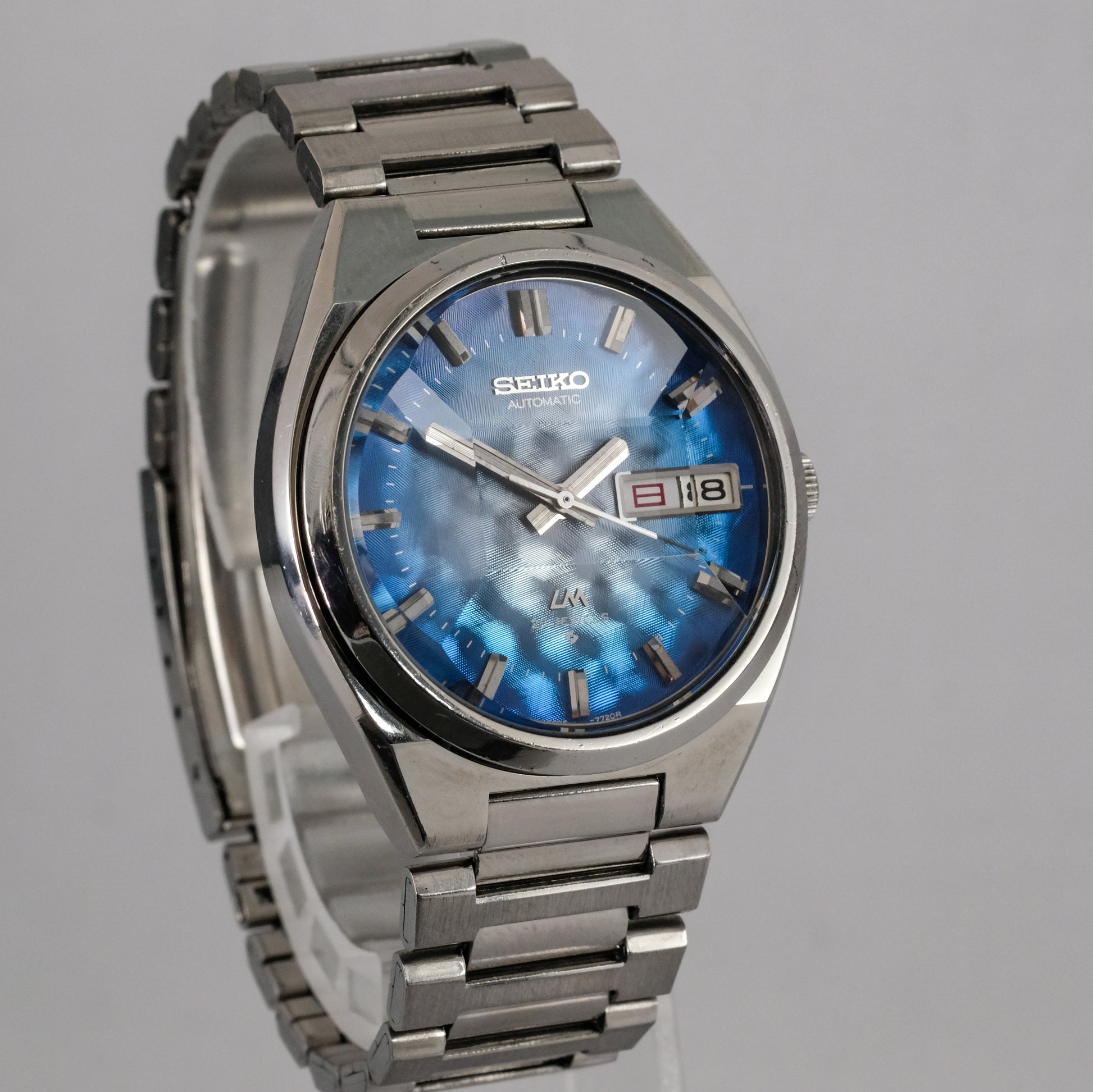 Serviced, 1974 Seiko LM 25 jewels automatic watch with very rare morpho blue dial, in pretty good condition.