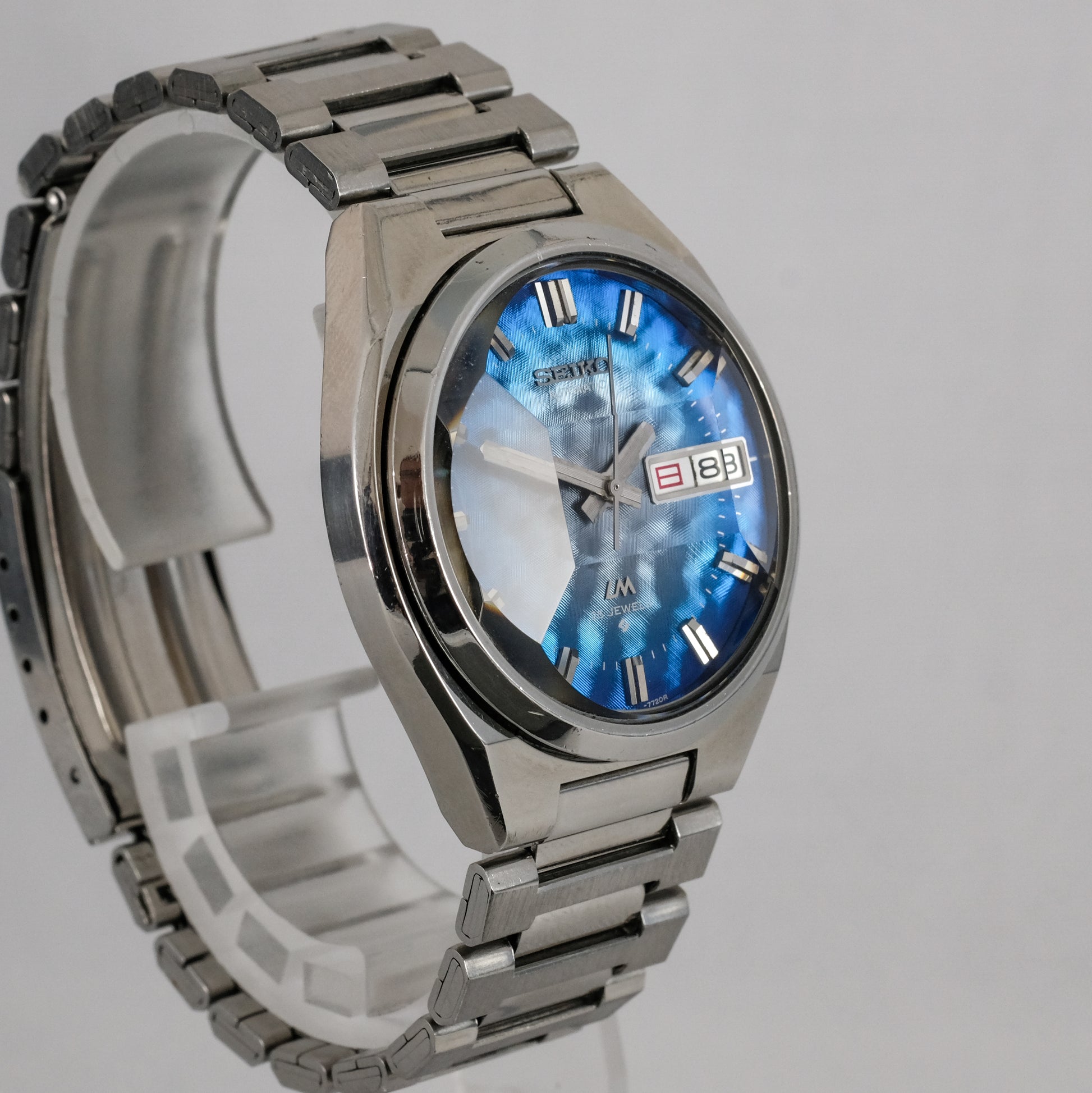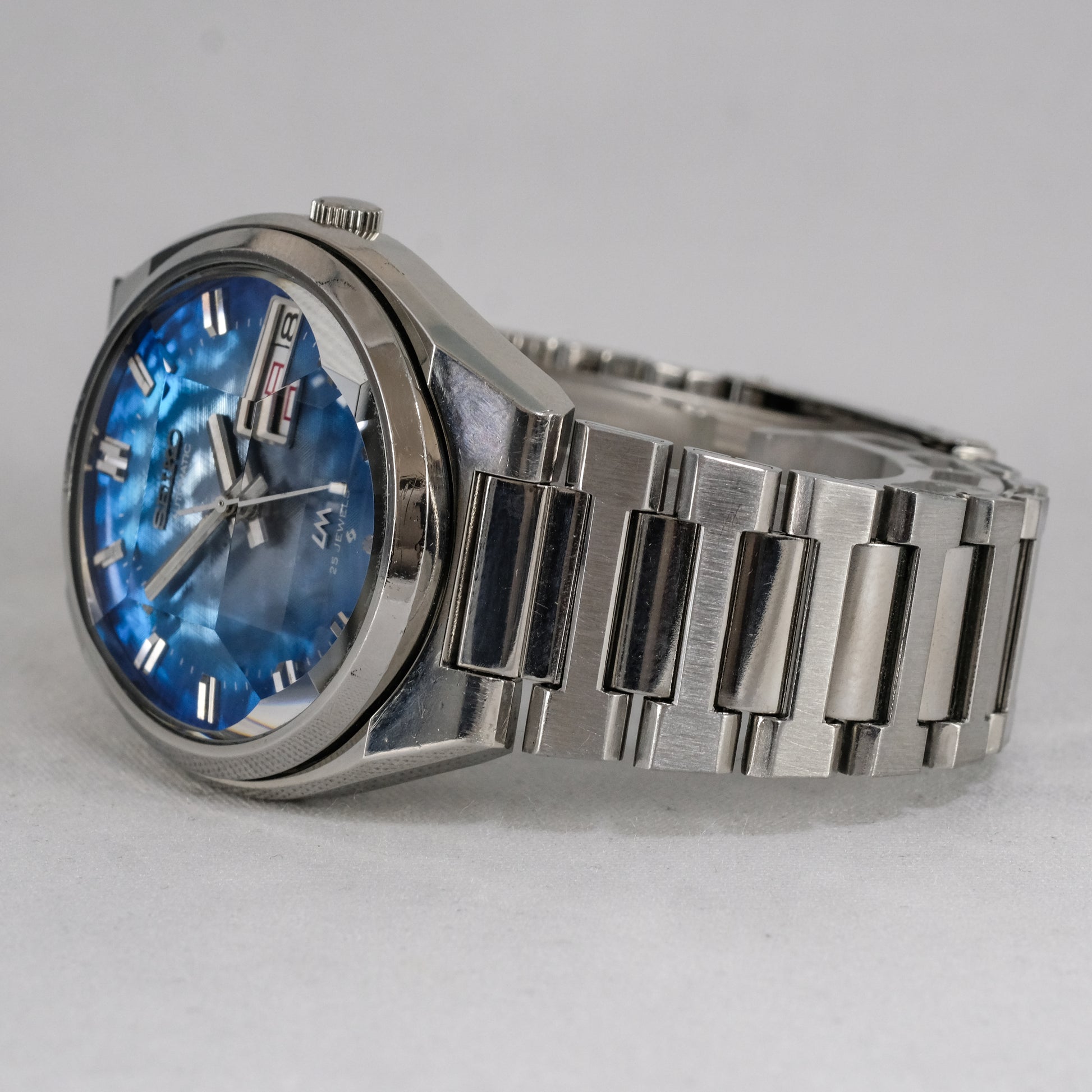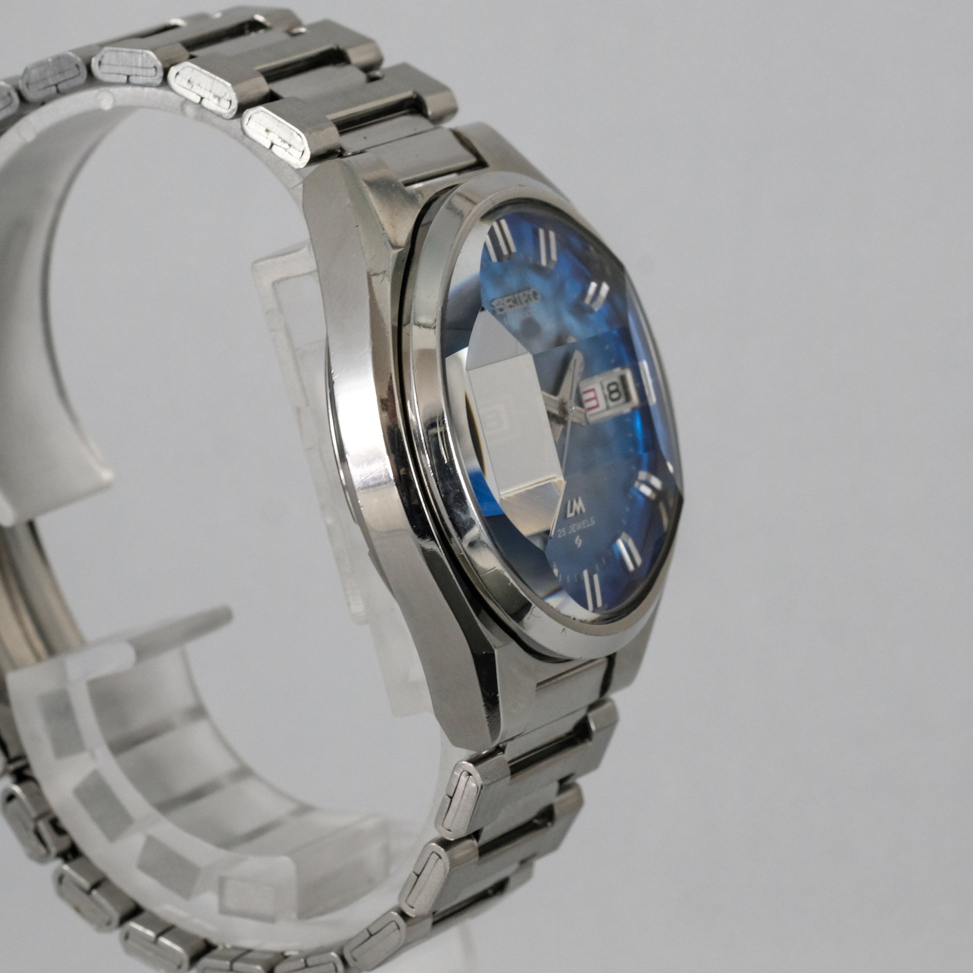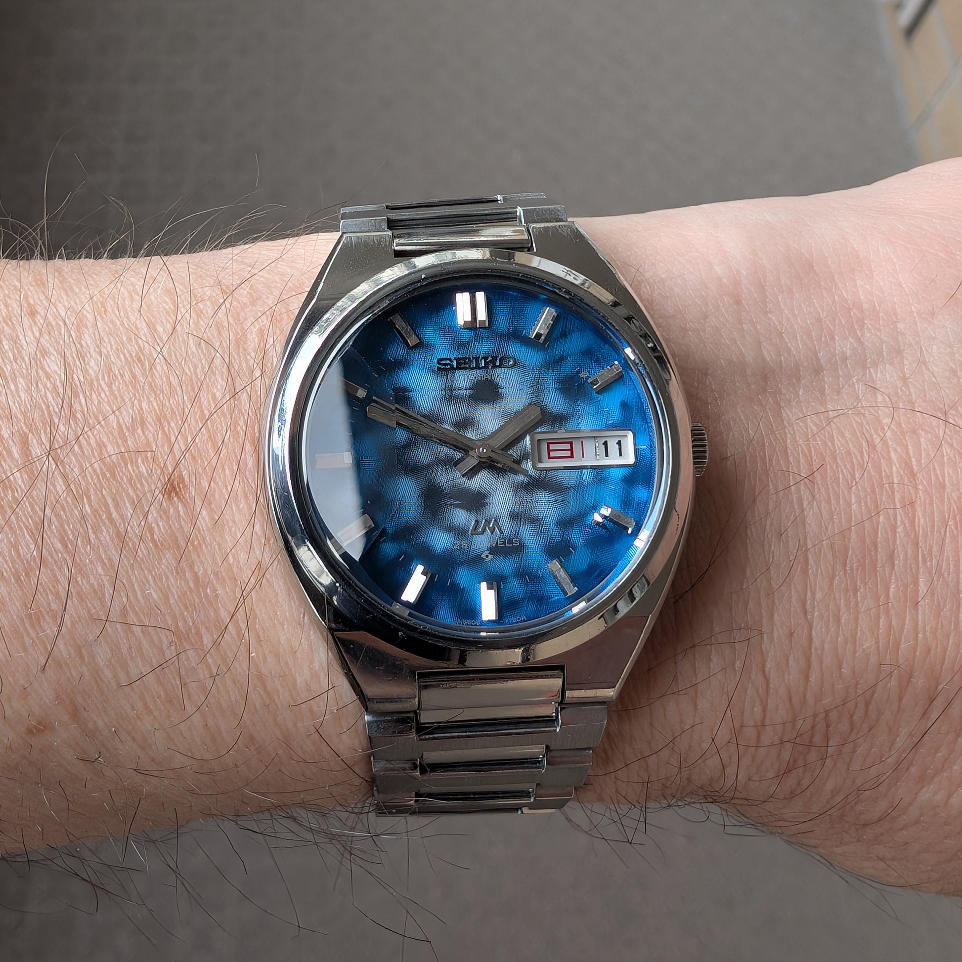 Serviced, 1974 Seiko LM 25 jewels automatic watch with very rare morpho blue dial, in pretty good condition.