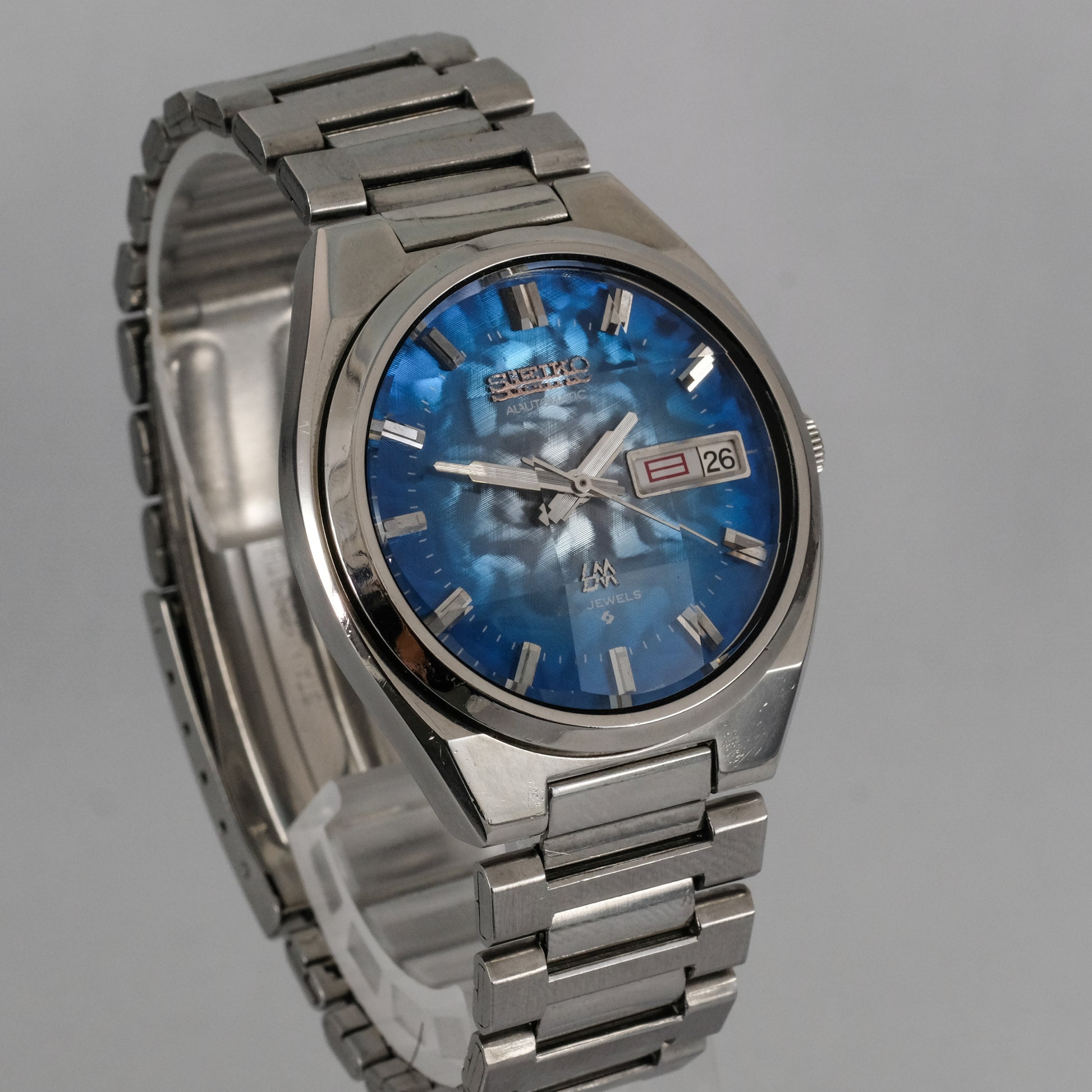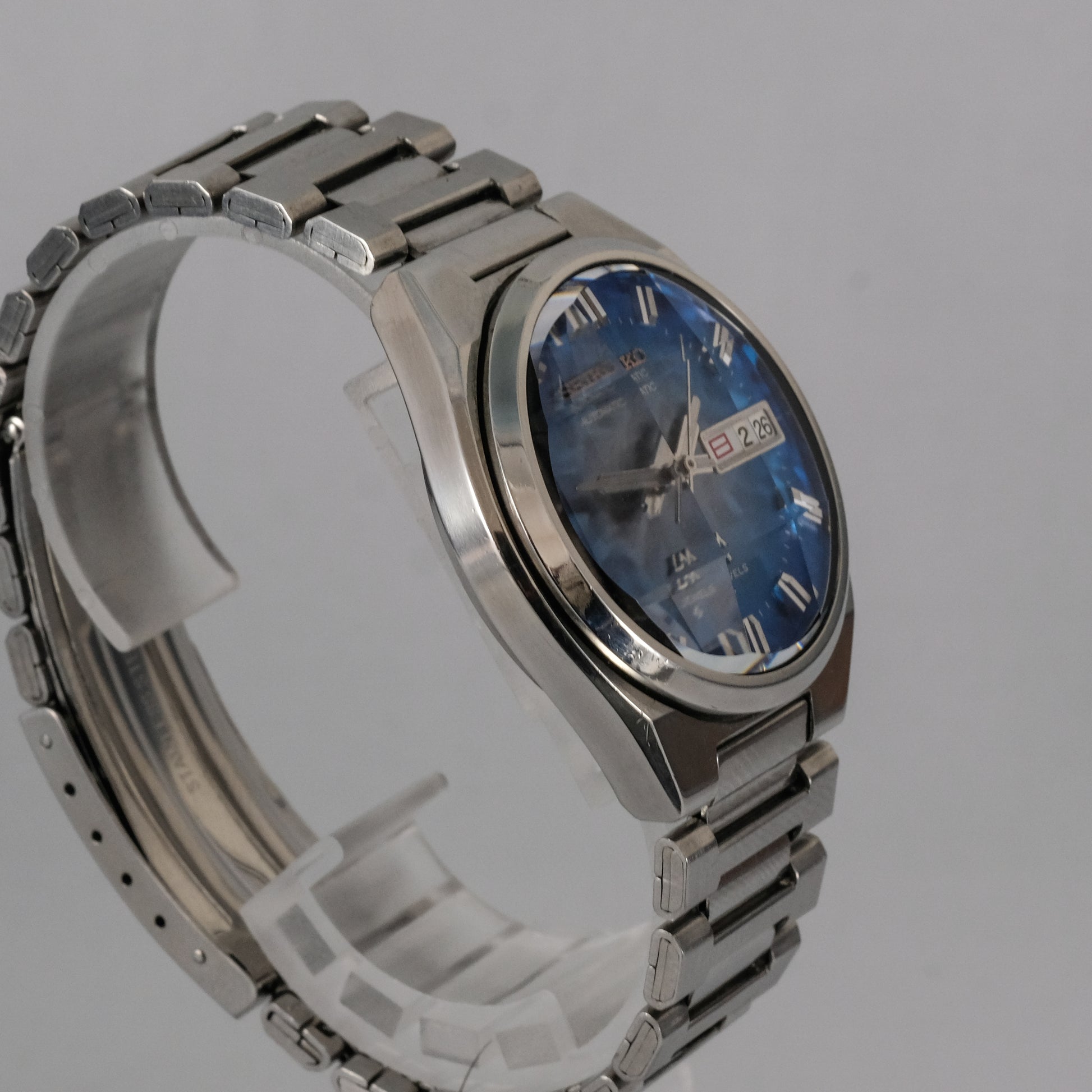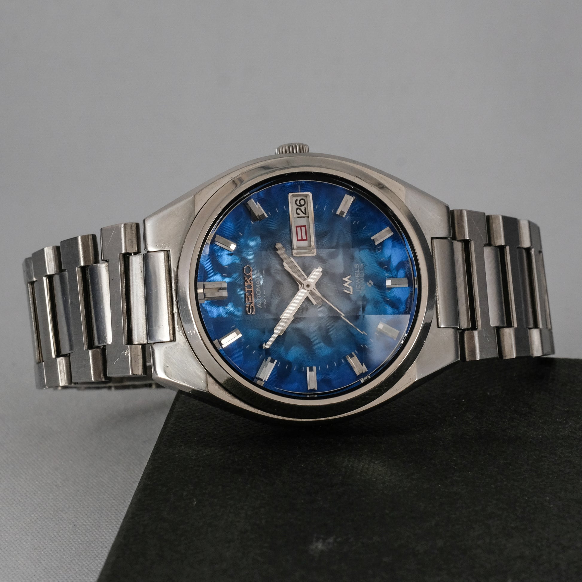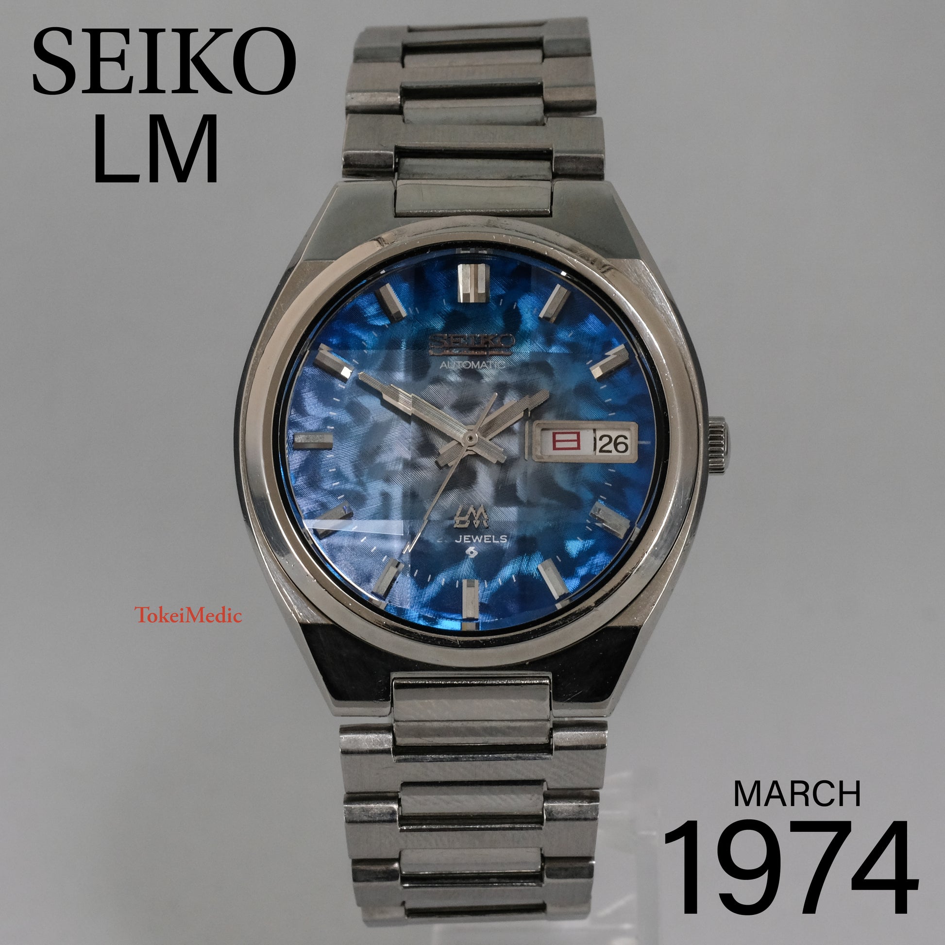 Serviced, 1974 Seiko LM 25 jewels automatic watch with very rare morpho blue dial, in pretty good condition.