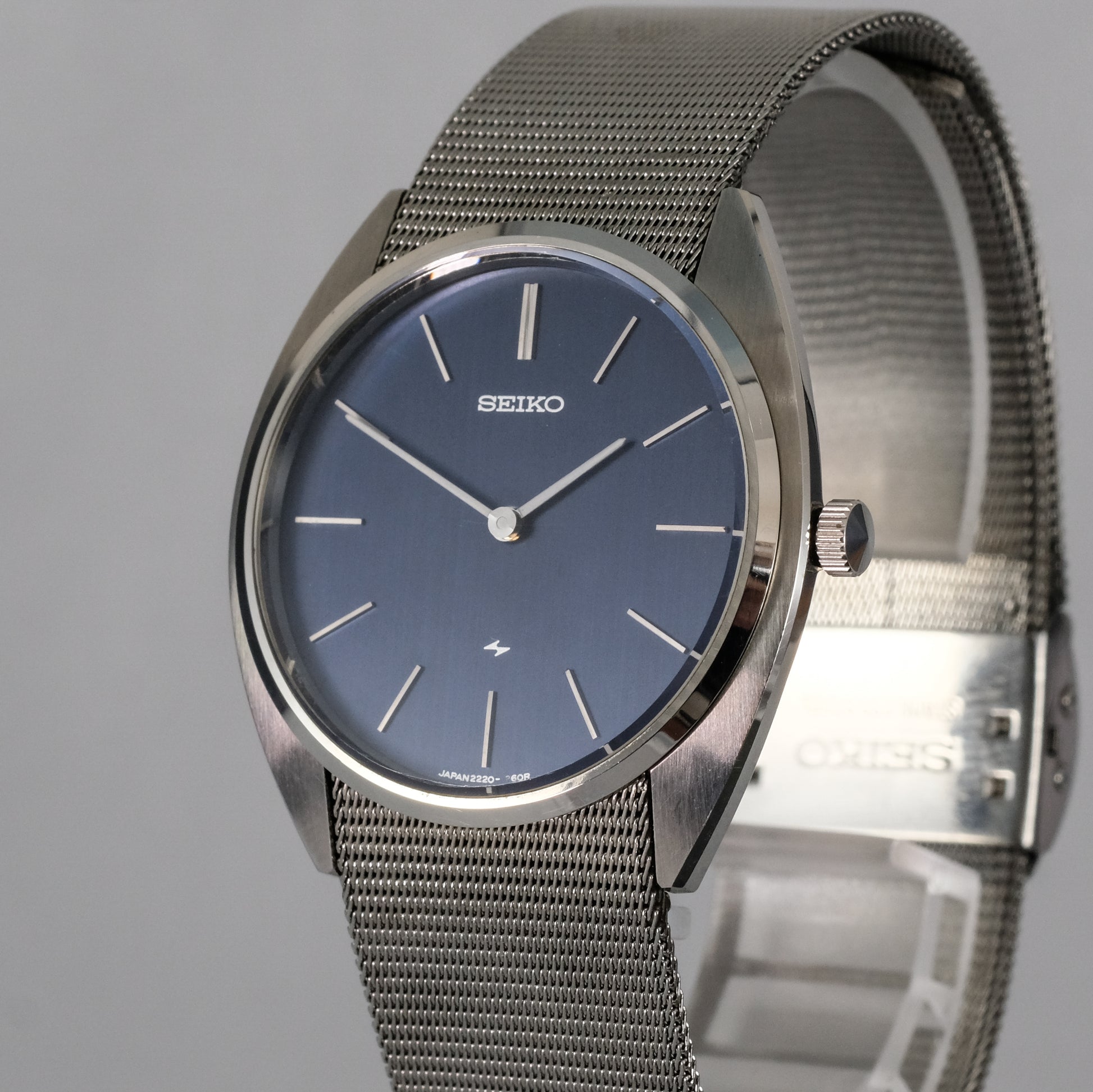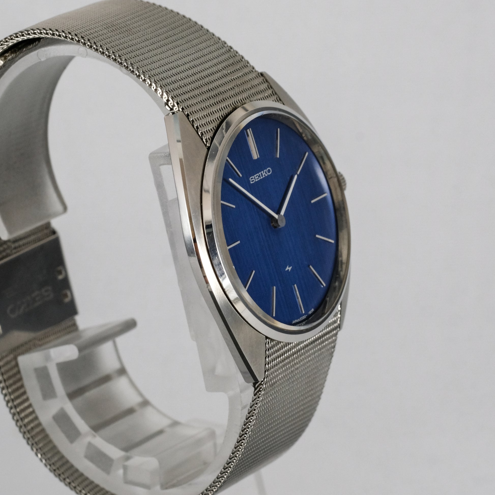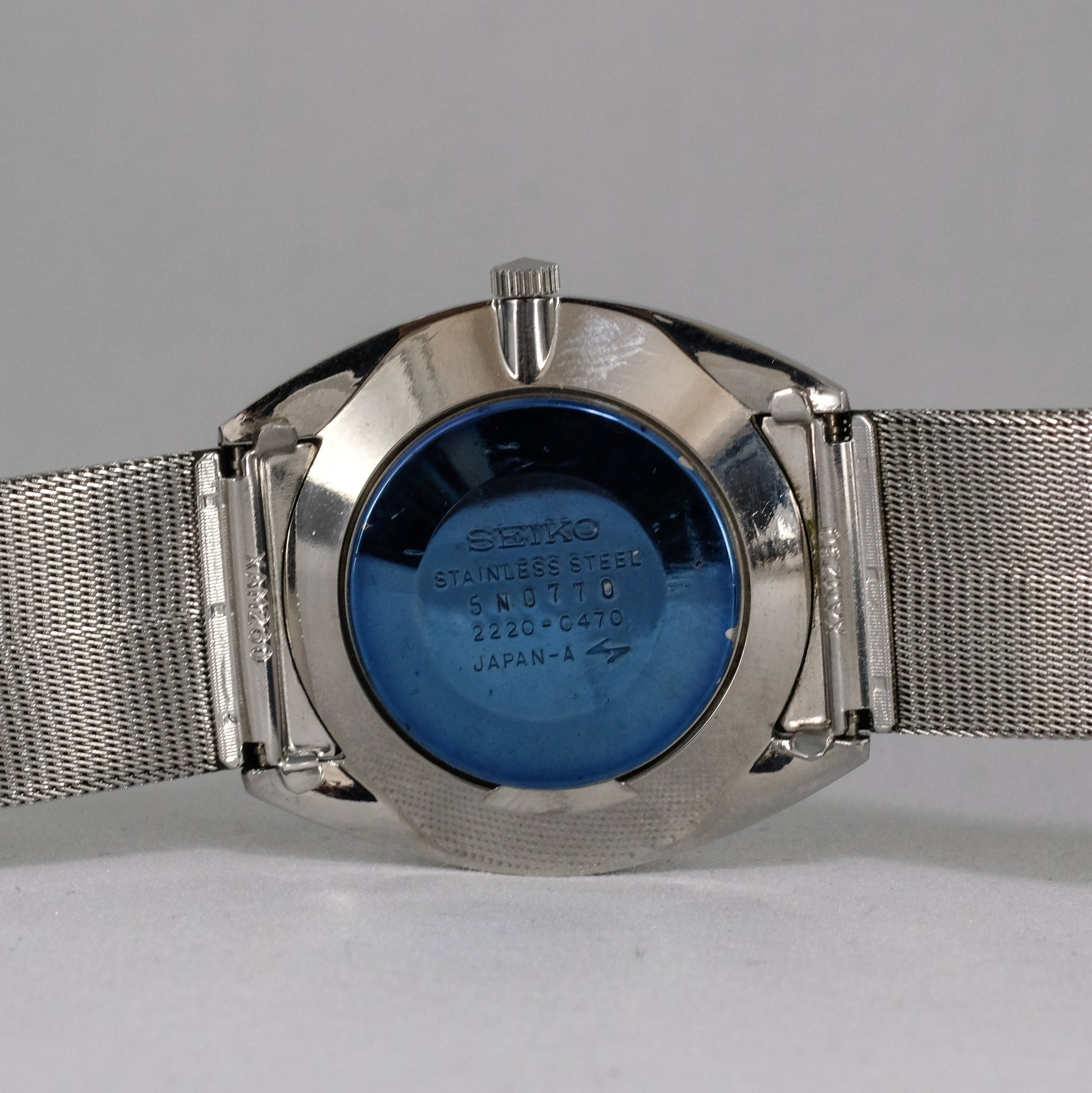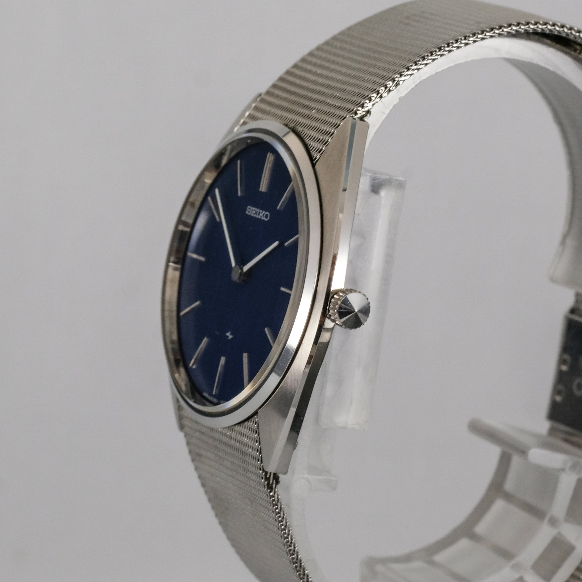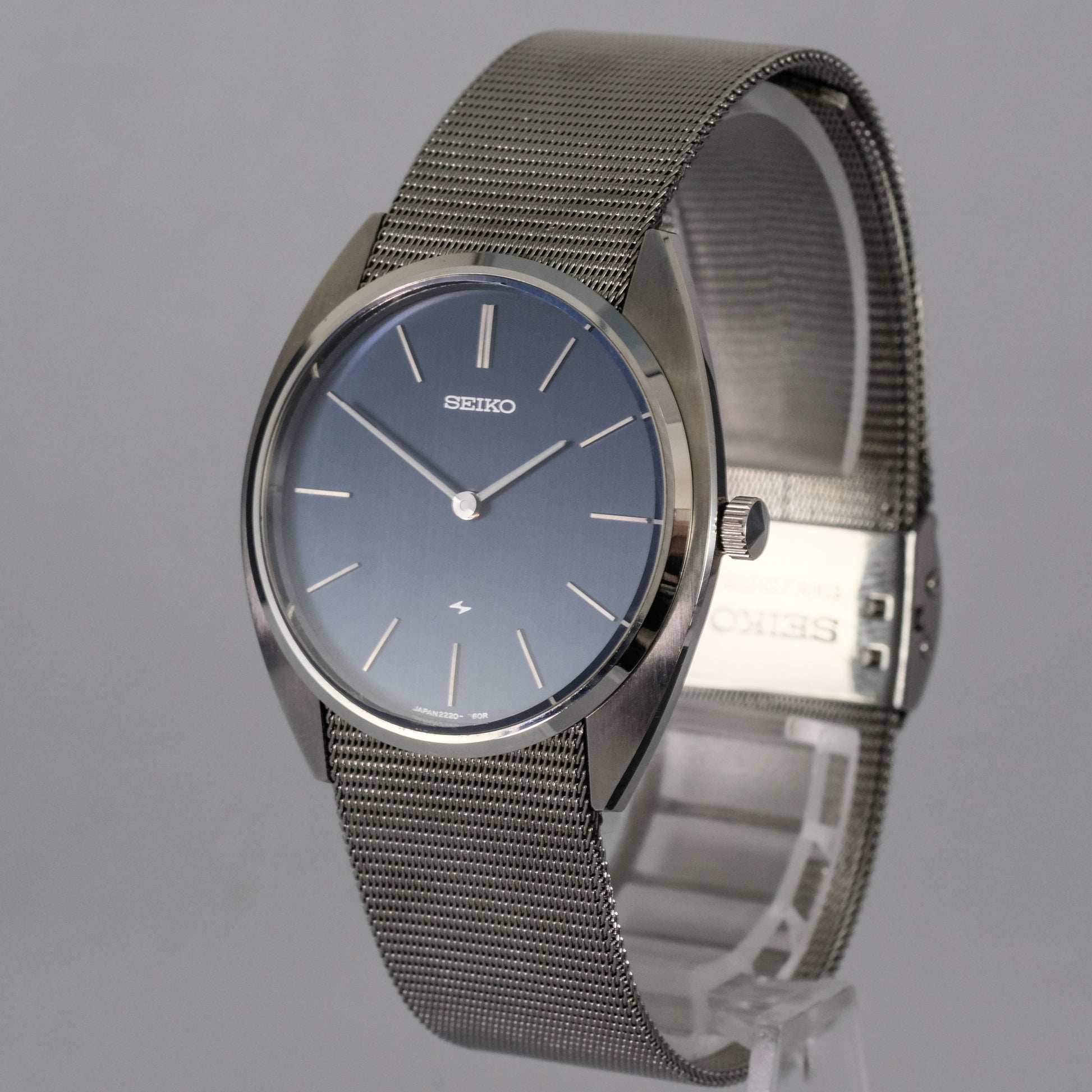Case is thin, sharp with original finish and original stainless steel bracelet.