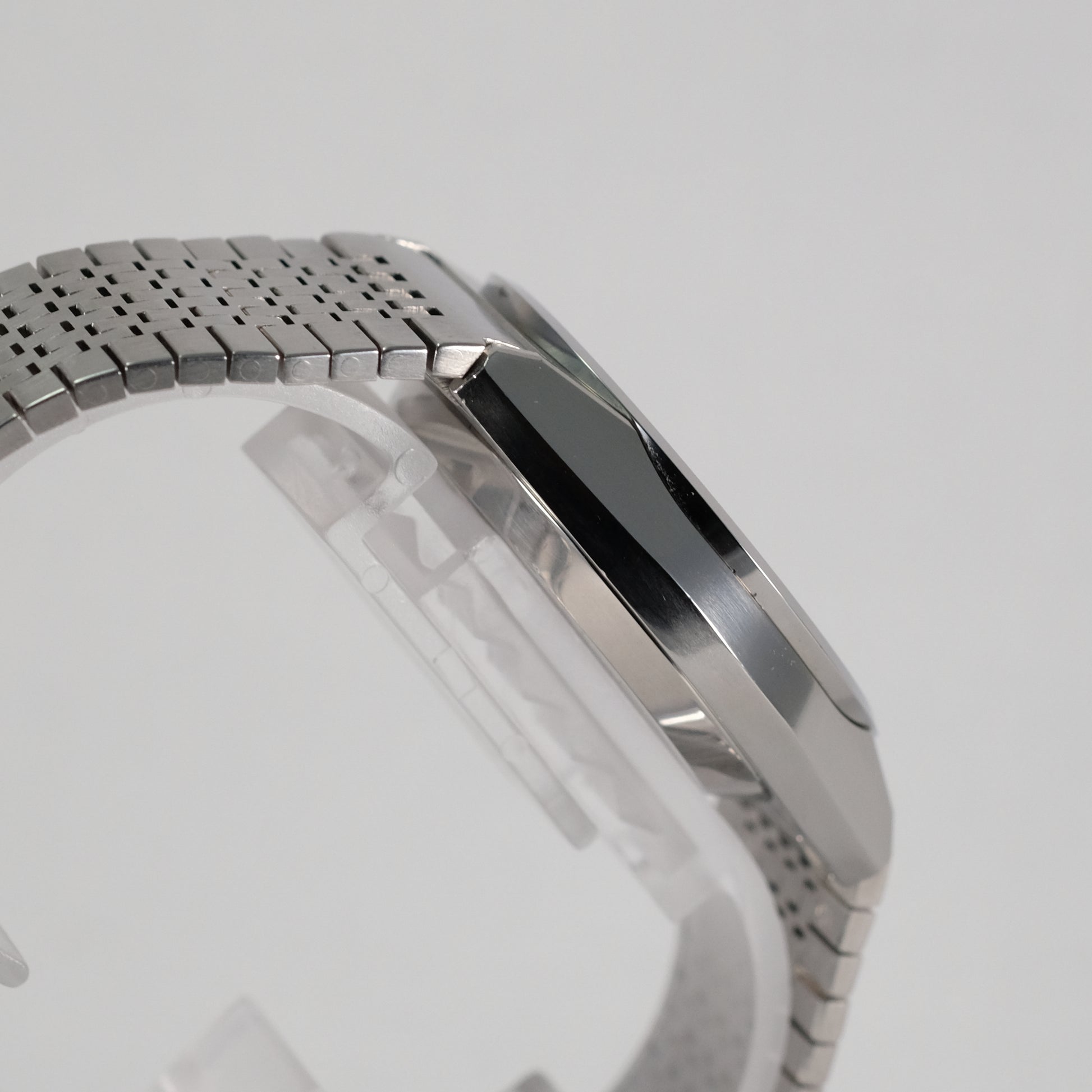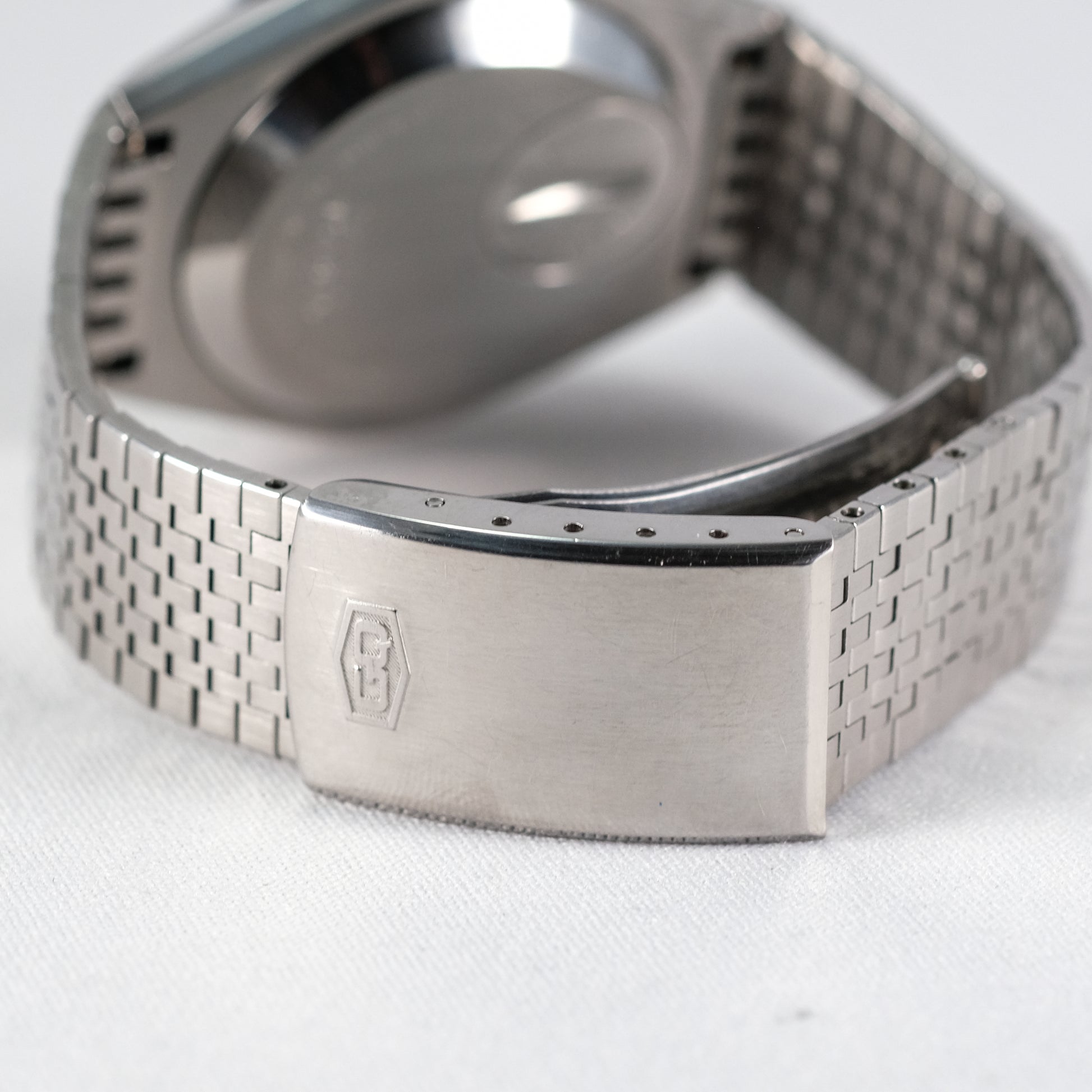 Sharp case with original steel bracelet. It will fit up to 17cm wrist. With added clasp extension it could fit over 18.5cm. Good condition with few small, barely noticeable scratches.