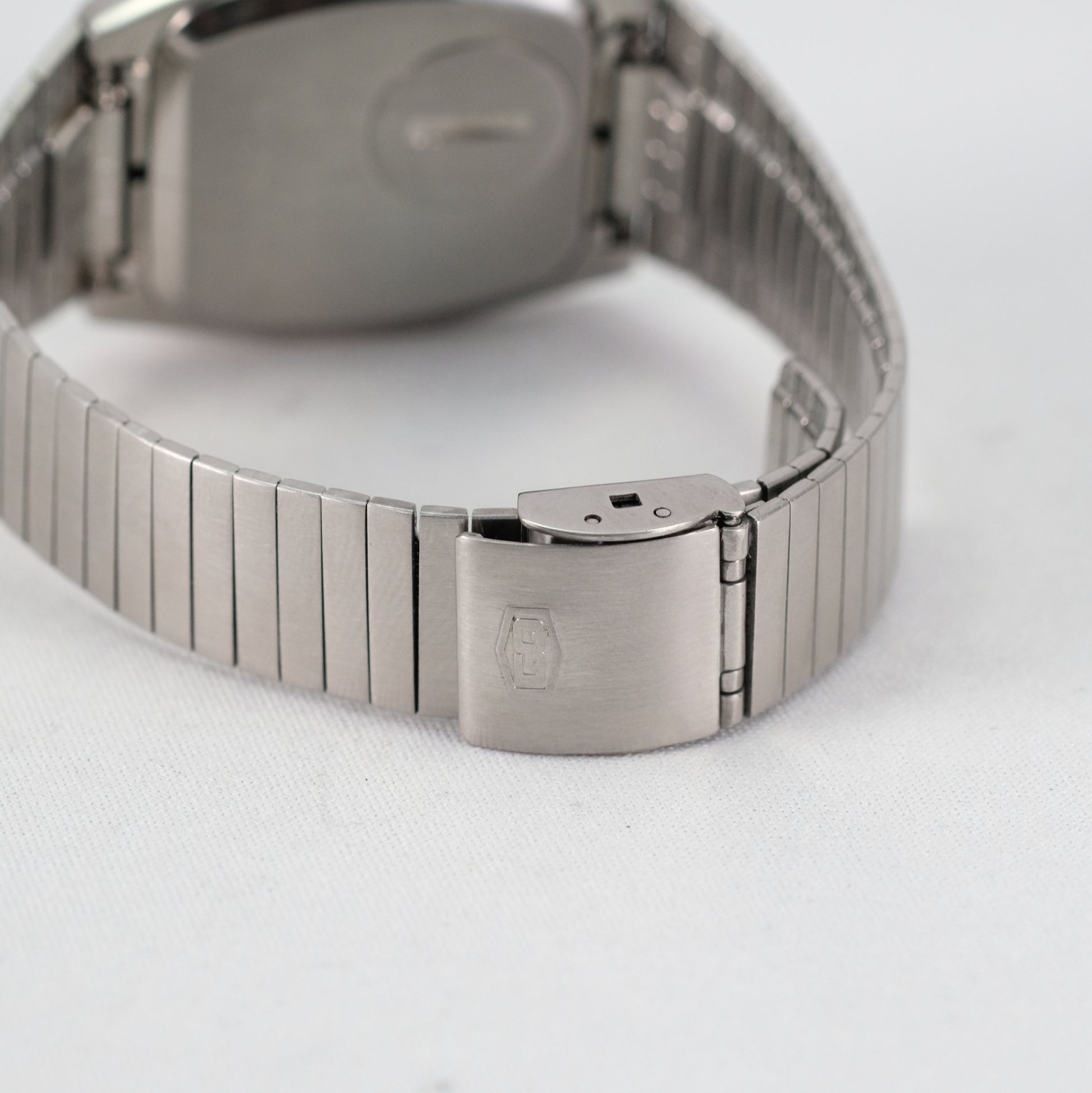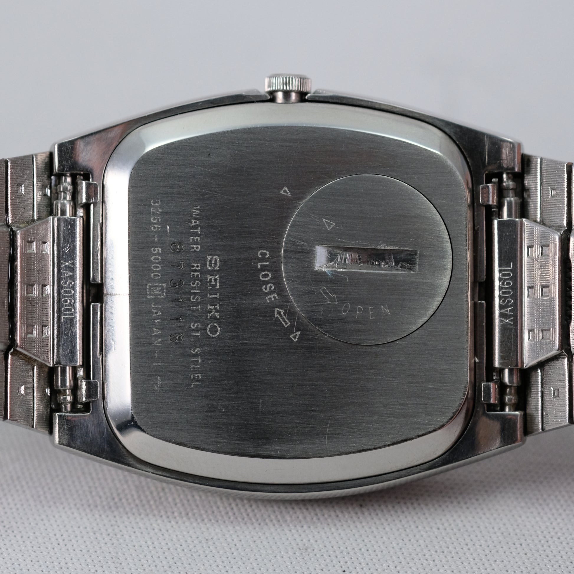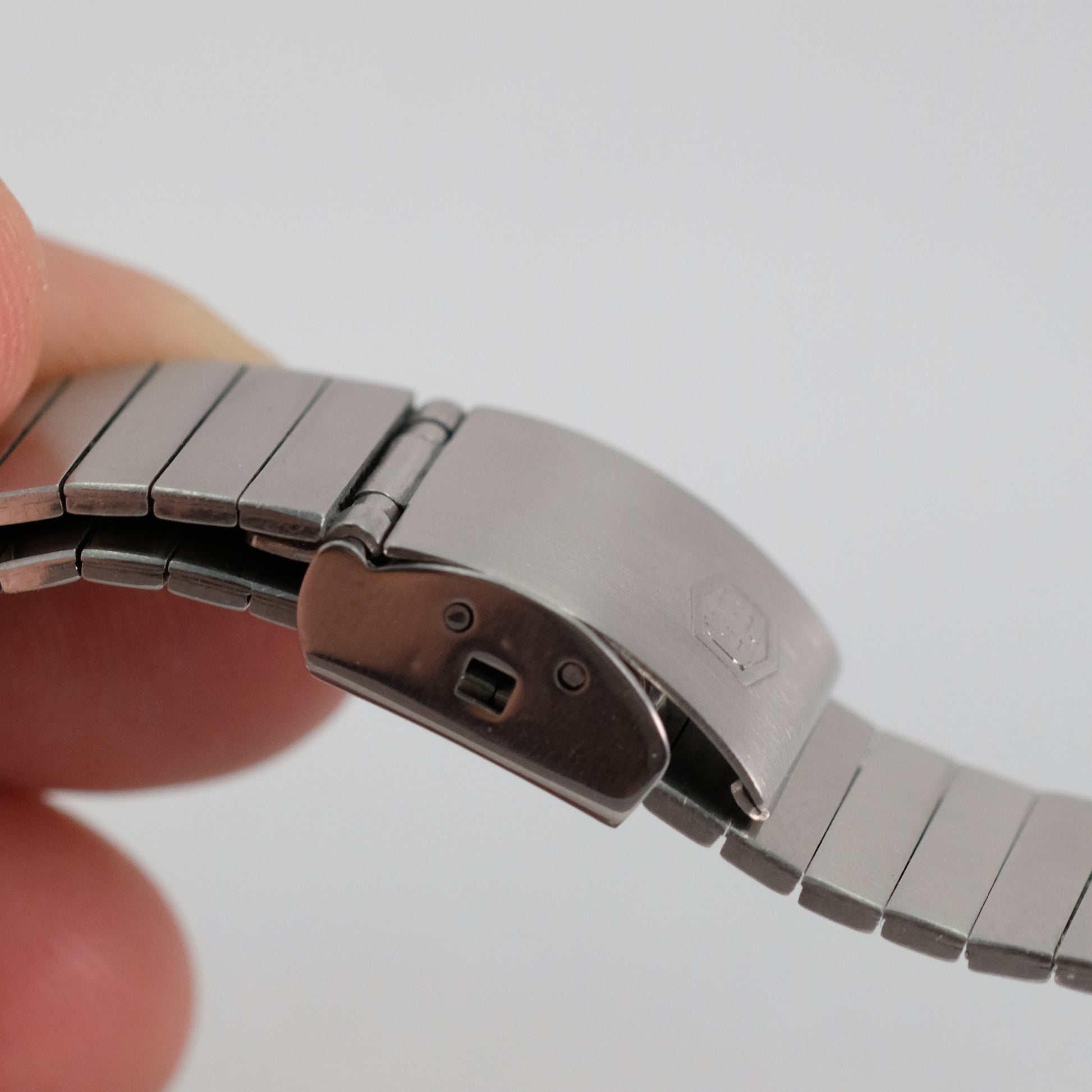 It's in good condition, however original sliding part of clasp was lost and replaced with different Seiko one. Size doesn't match with GQ signed hooking part of clasp, but it works well and it locks firmly.