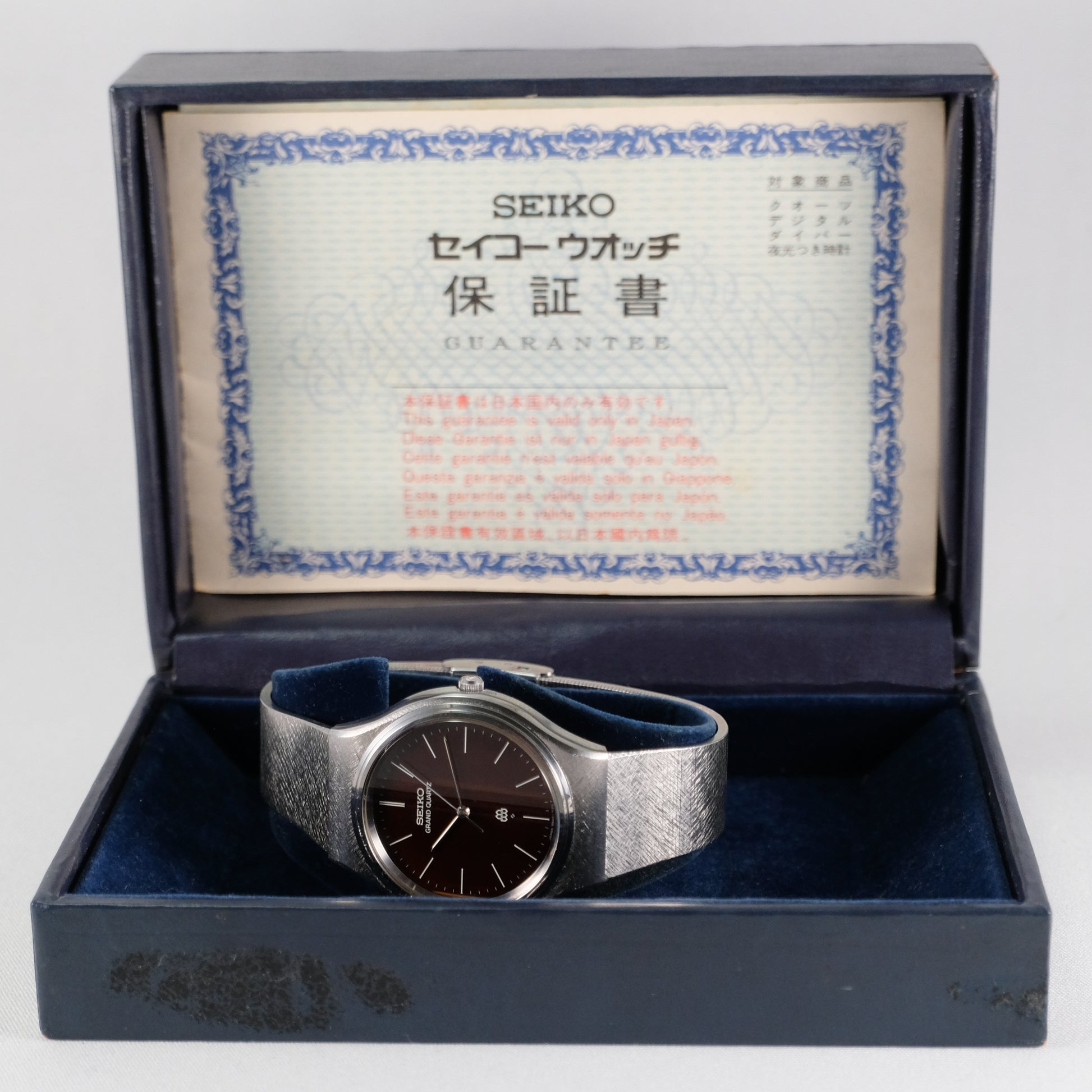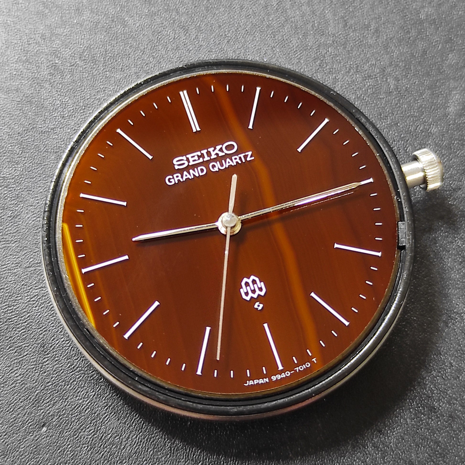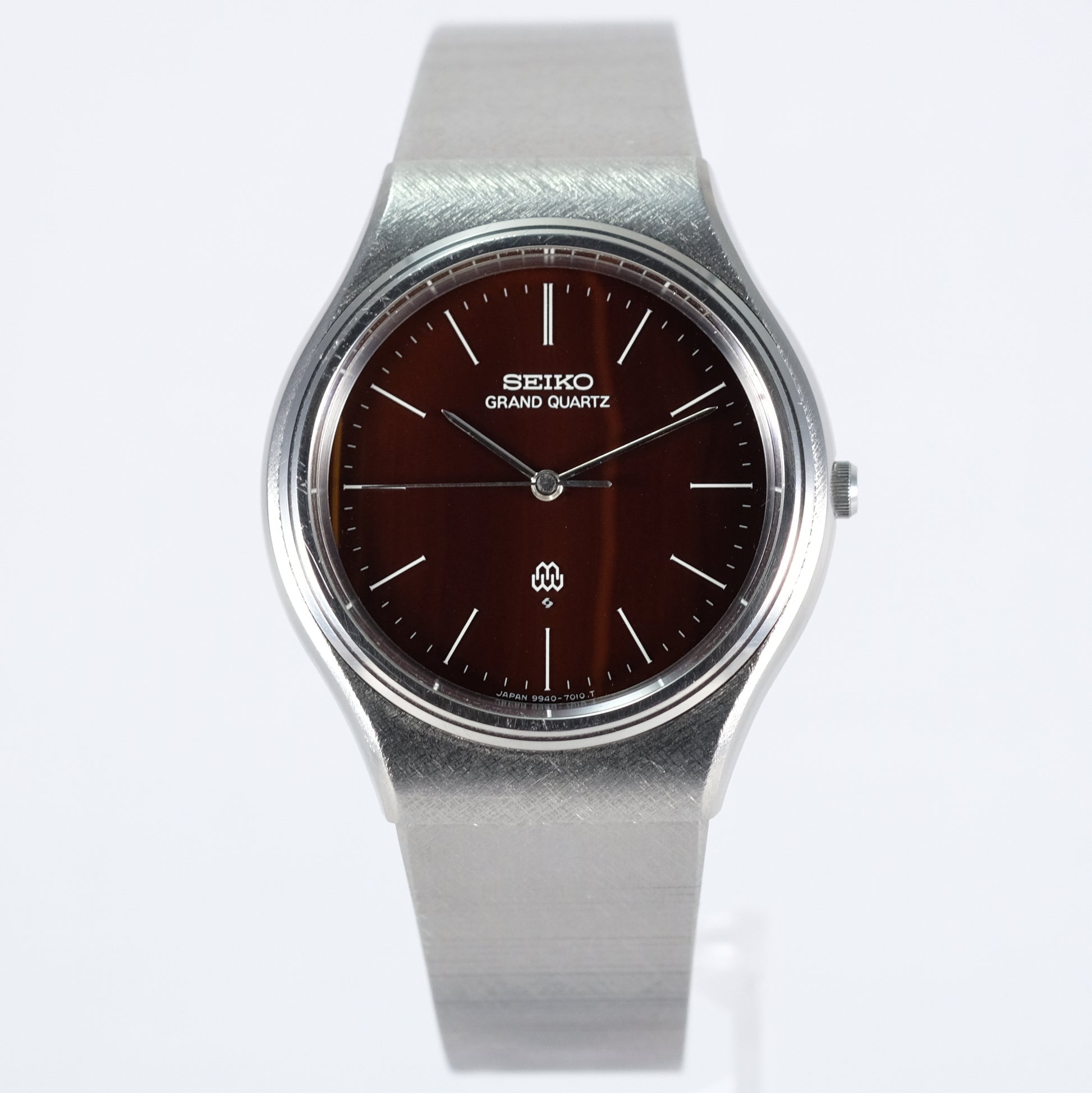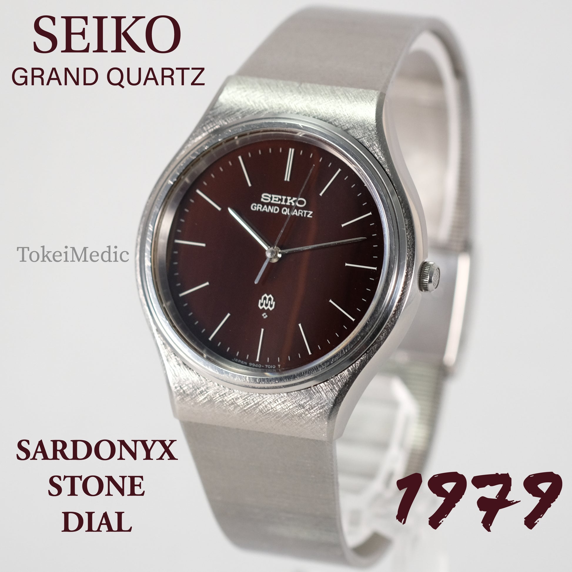 Rare, one of the kind 1979 Seiko Grand Quartz high end, high accuracy twin quartz with beautiful sardonyx stone dial in mint condition with original box and papers.