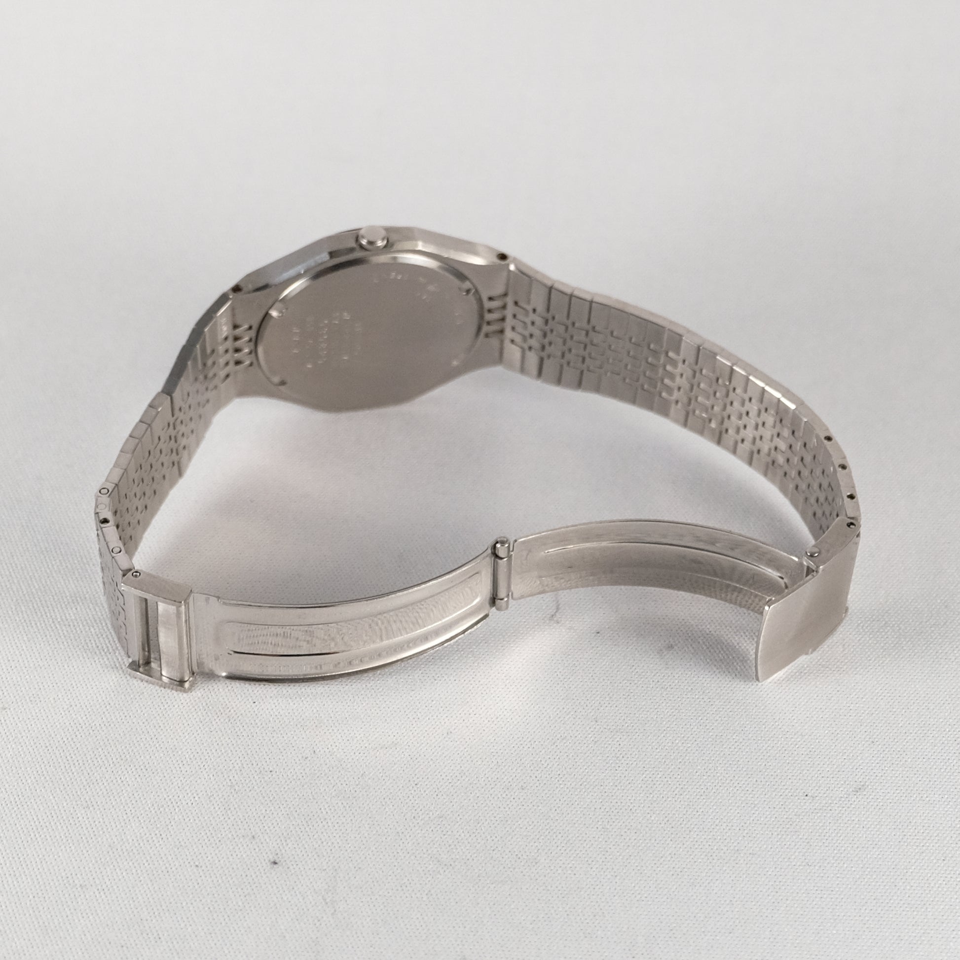 High quality, integrated stainless steel bracelet with sublime clasp found on top end Grand Quartz models. Minor scratches, good overall condition.