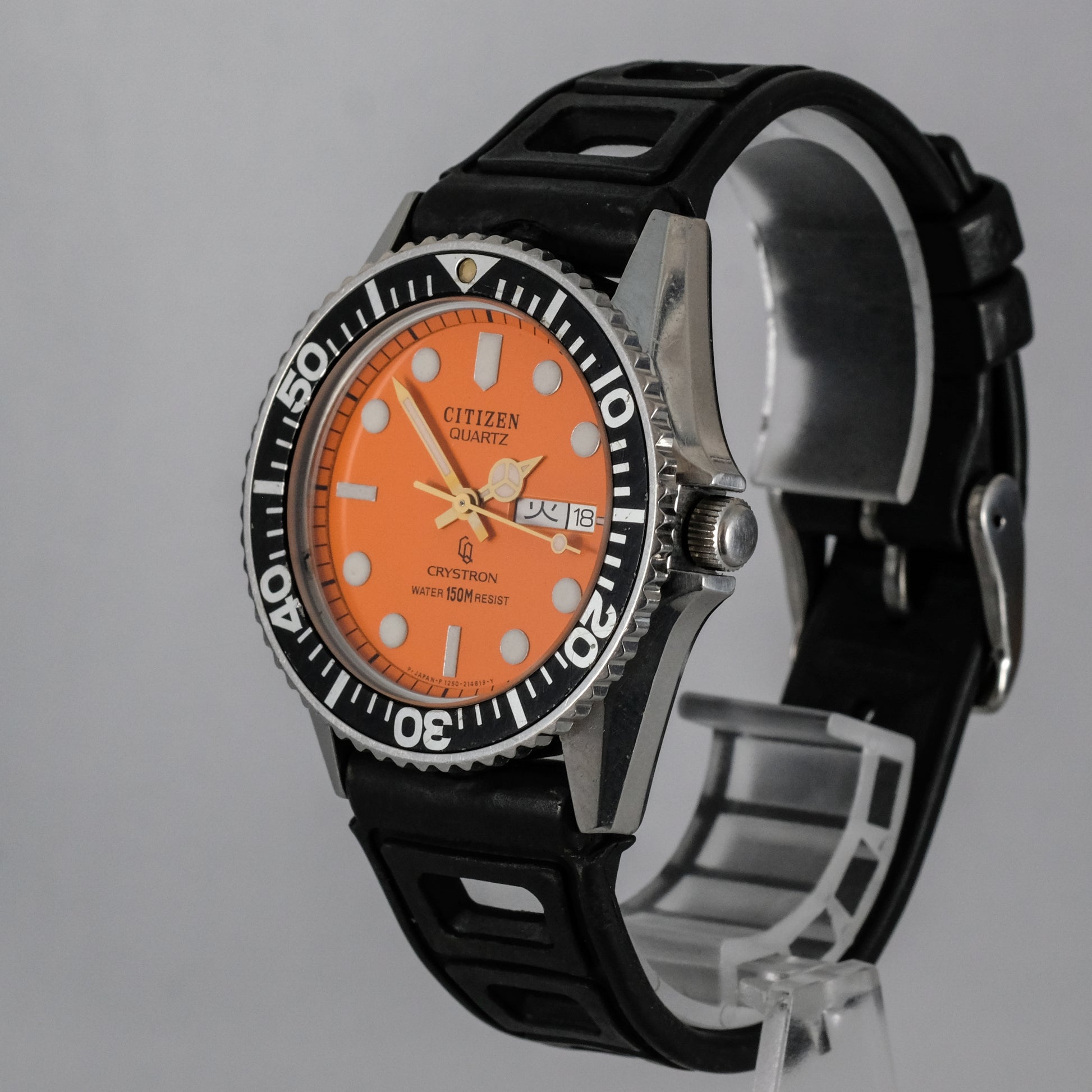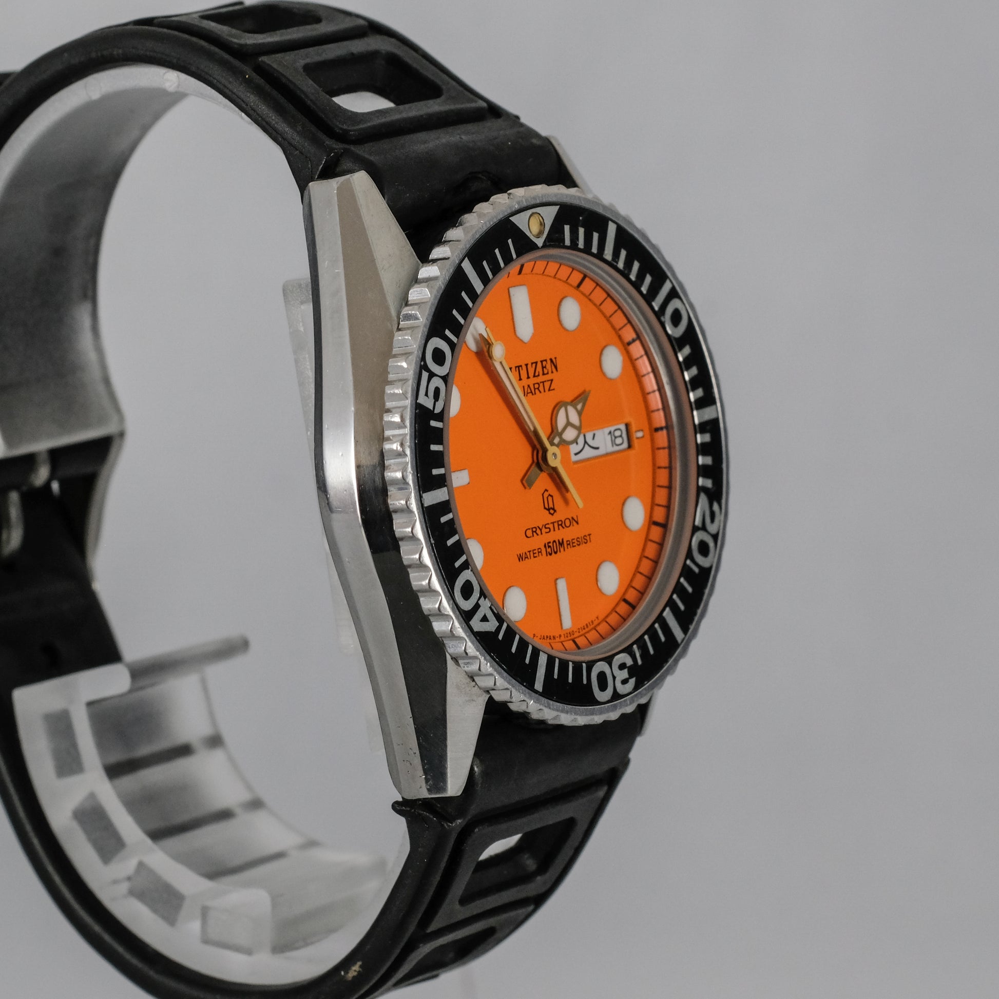 Serviced, 1981 Citizen Crystron Quartz Diver with rate orange dial, in beautiful condition.