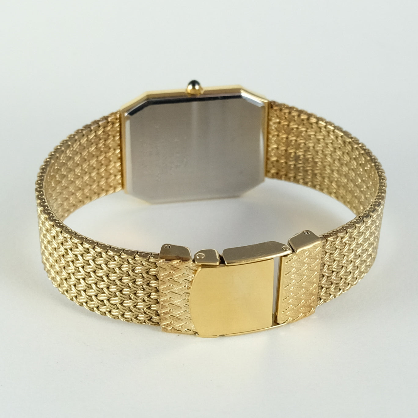 Gold plated case and integrated bracelet are in excellent condition with only few tiny scuffs on the clasp.