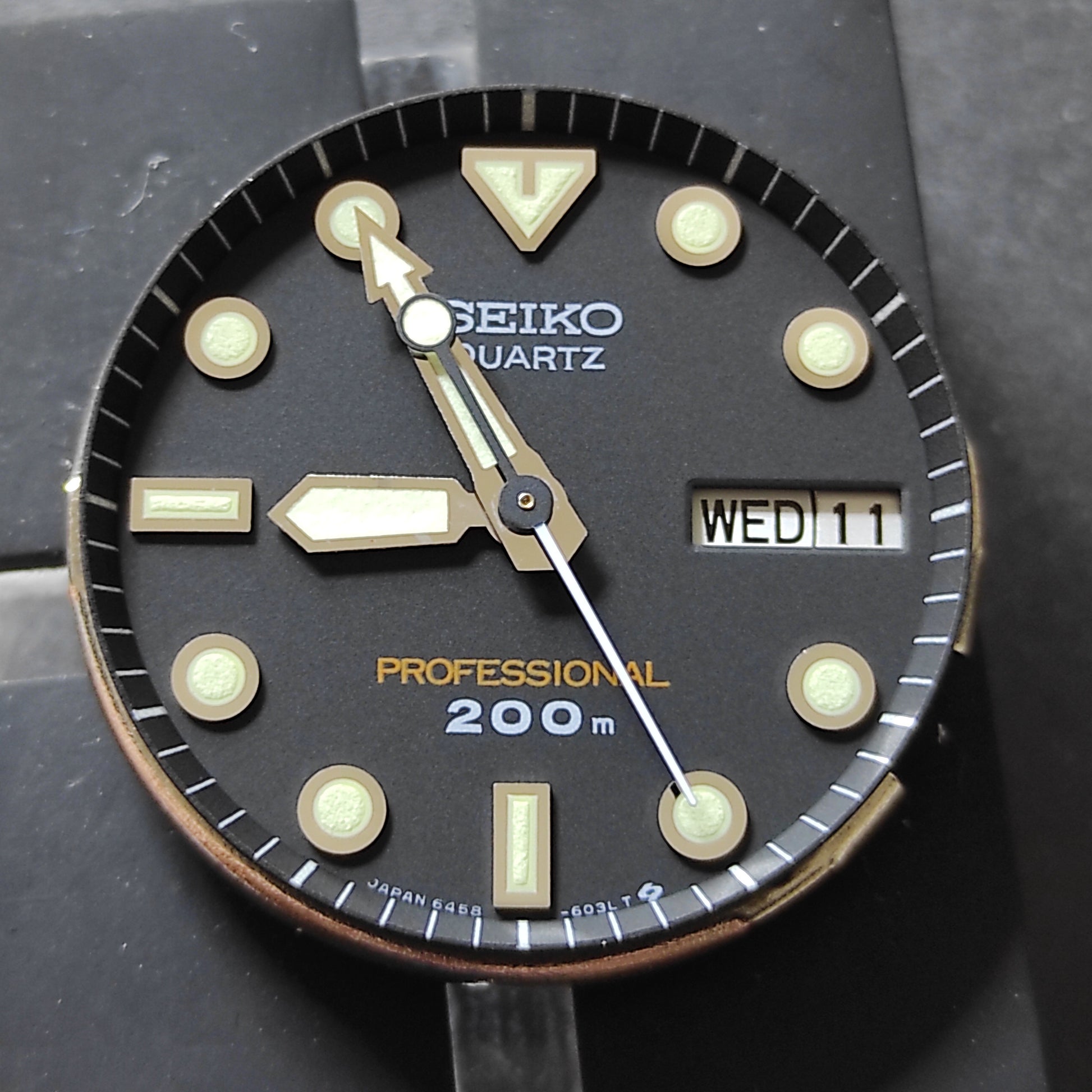 Caliber 6458 series is highly collectable and known for its superior quality, finishing and small production and this model is at the top. More common 6458 models had 150m rating written on dial. This model has 200mm rating.