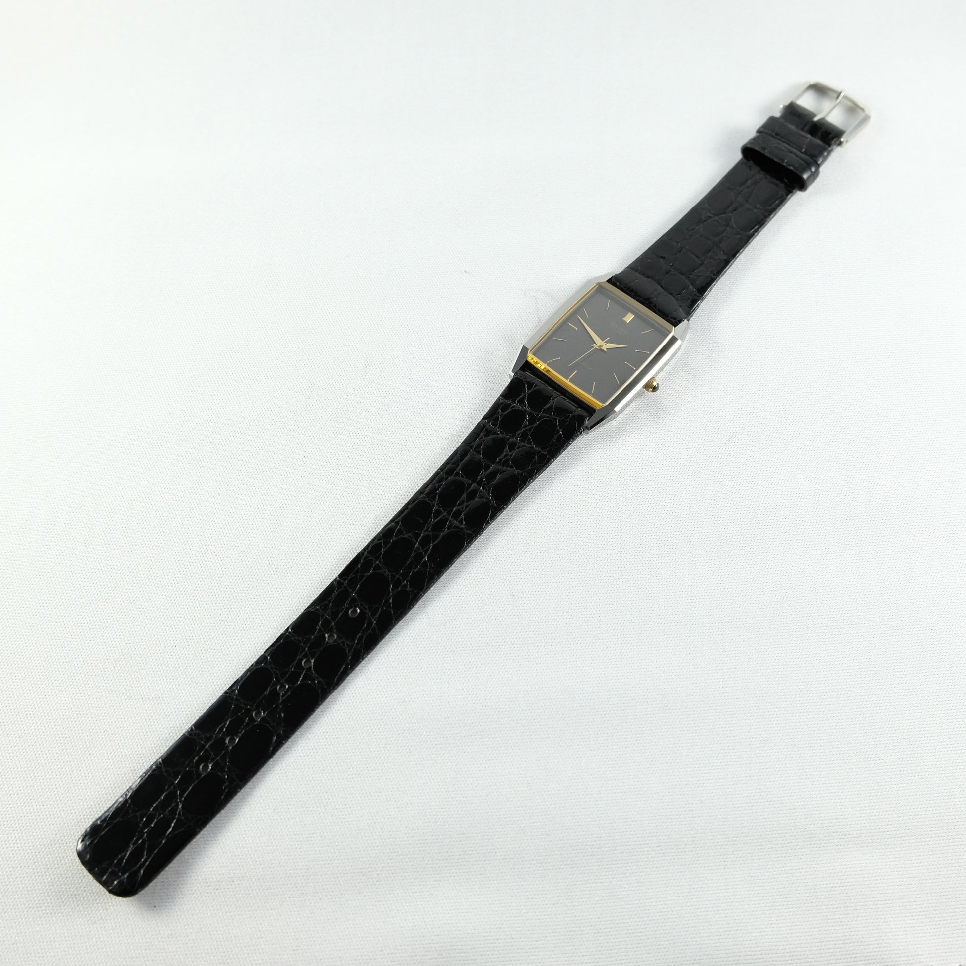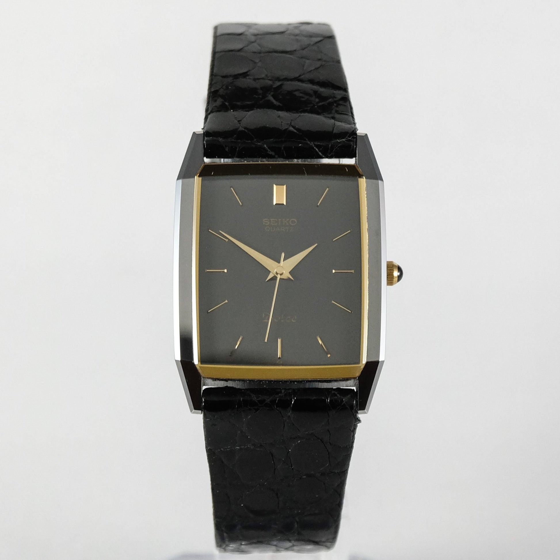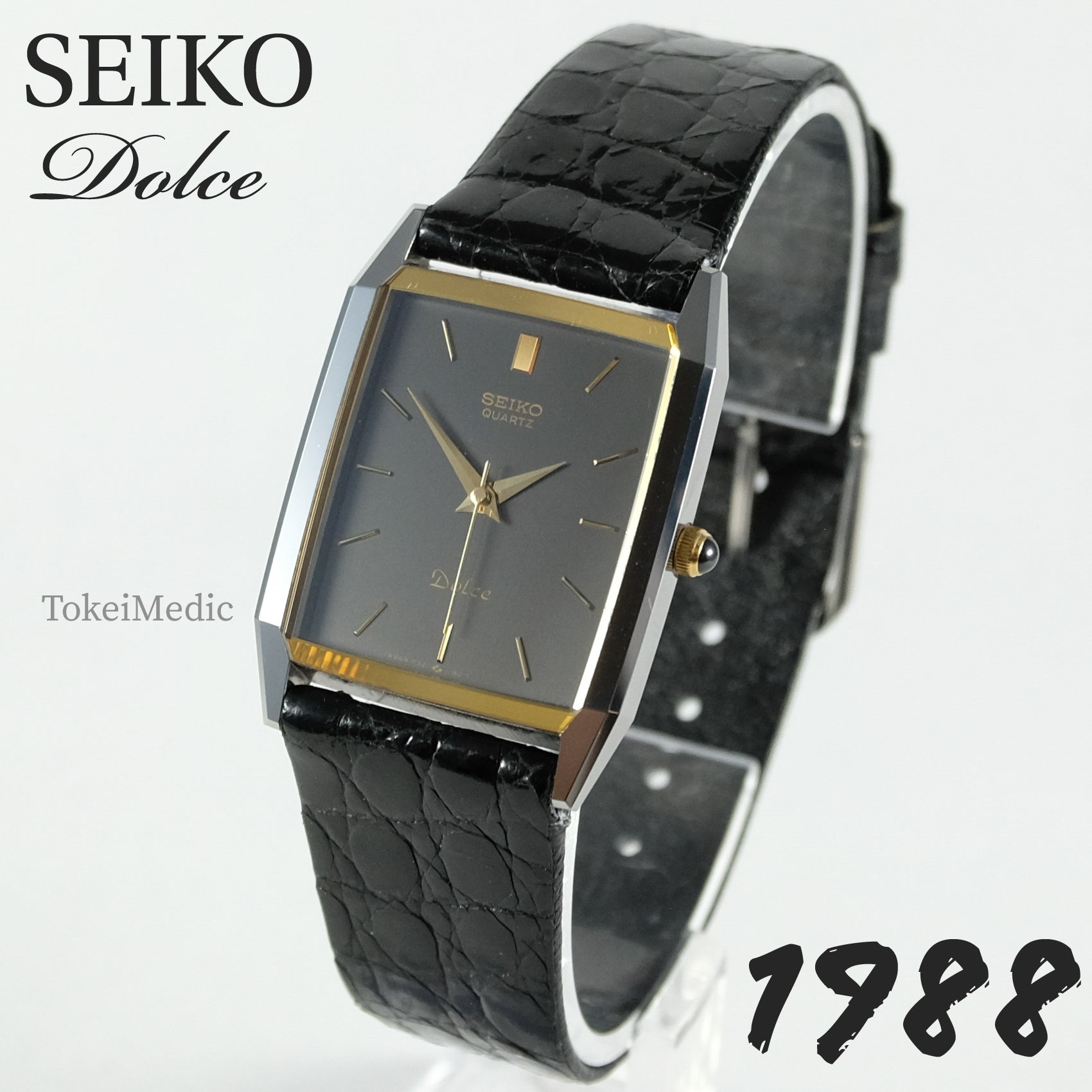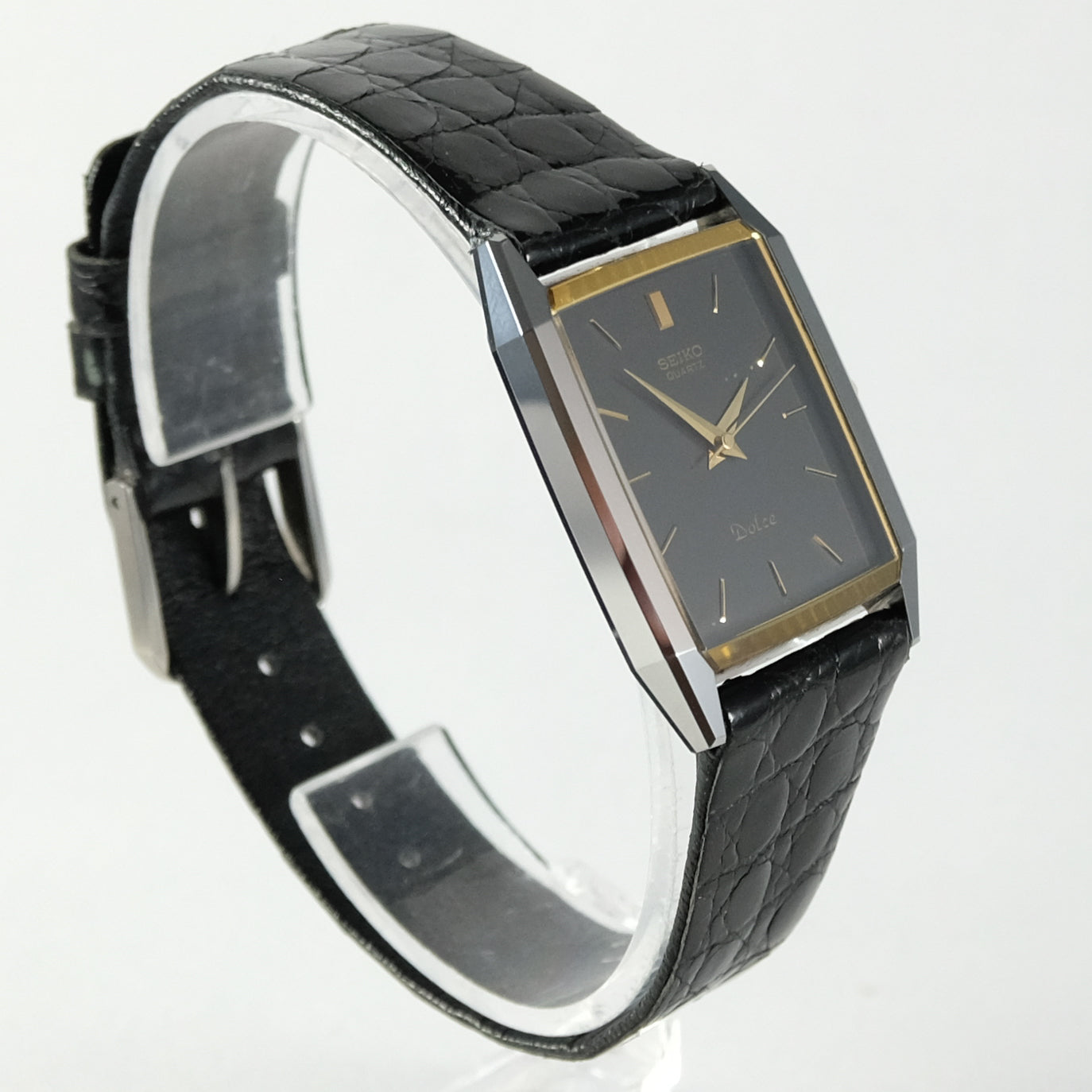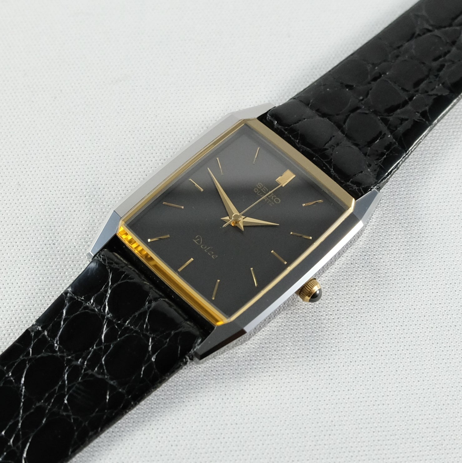 1988 Seiko Dolce high end quartz watch in mint condition on original Dolce crocodile leather with box and papers.