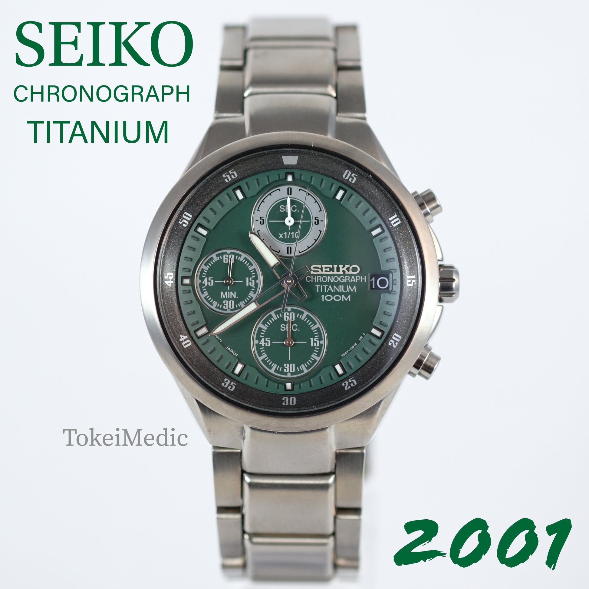 2001 Seiko Chronograph Titanium quartz watch with rare grass green dial in very good condition.